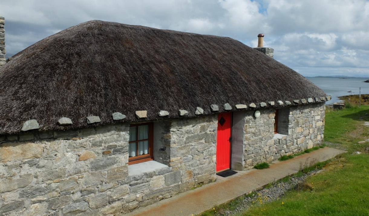 30 Backhill owners Anna and Hilary are delighted to welcome you to their stone built, beautifully renovated thatched cottage on the idyllic island of Berneray in the Western Isles. The cottage is cosy and romantic, with a wood-burning stove, a double bedroom with Harris Tweed soft furnishings, a good sized bathroom and an elegant sitting room with two good sofas, a dining area and a fully-fitted, well-equipped kitchen to one side. WiFi provided. All rooms look out over the sea, where you can see seals and even an otter if you’re lucky. Enjoy the magic of Berneray, with its white sandy beaches, abundant wild-life, flower-carpeted machair and slow pace of life. Sit in the garden on sunny days and watch the boats in and out of the harbour, enjoy walks over hills and beaches, catch the ferry to Harris for a day out, or drive across the causeway to enjoy the additional delights of the Uists. At the end of the day, relax by the fire and enjoy our selection of Hebridean books and guidebooks.