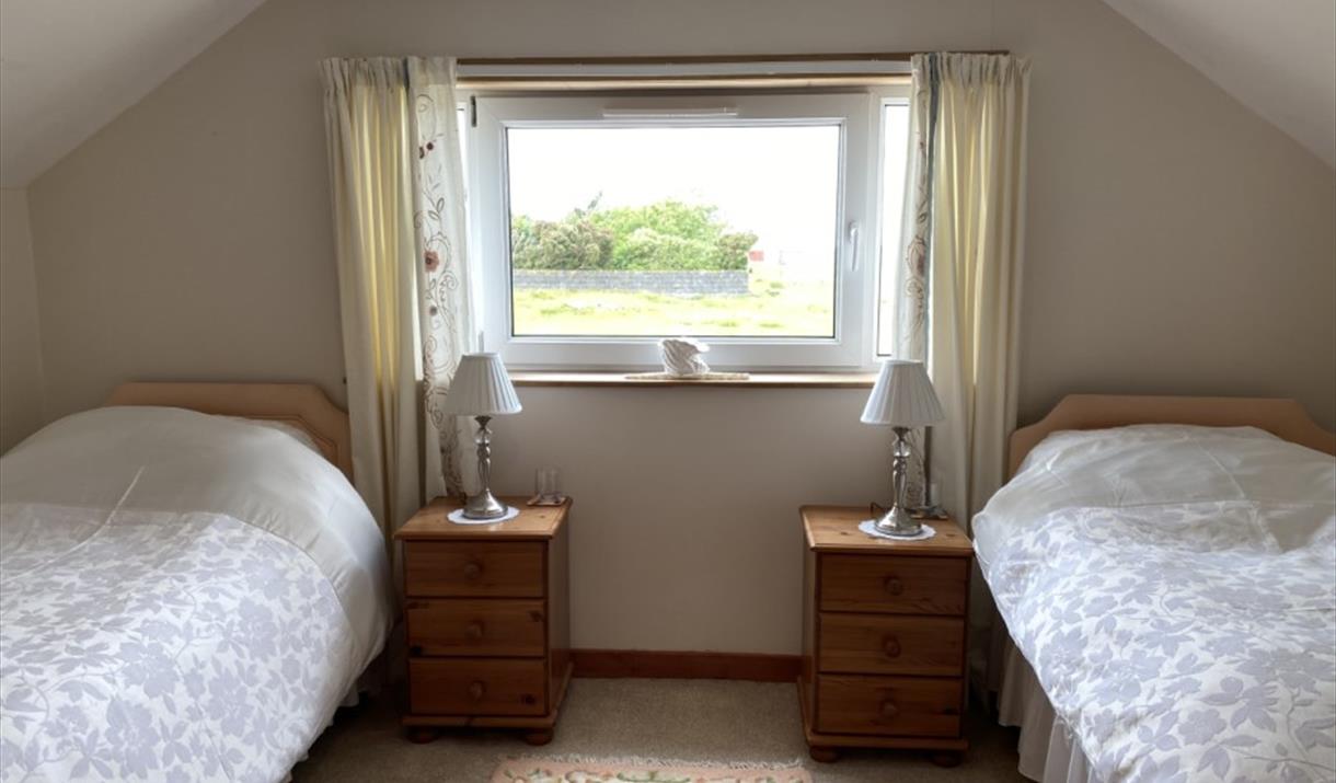 Situated on a working croft near the sea and beaches. Balranald bird reserve and golf course nearby.