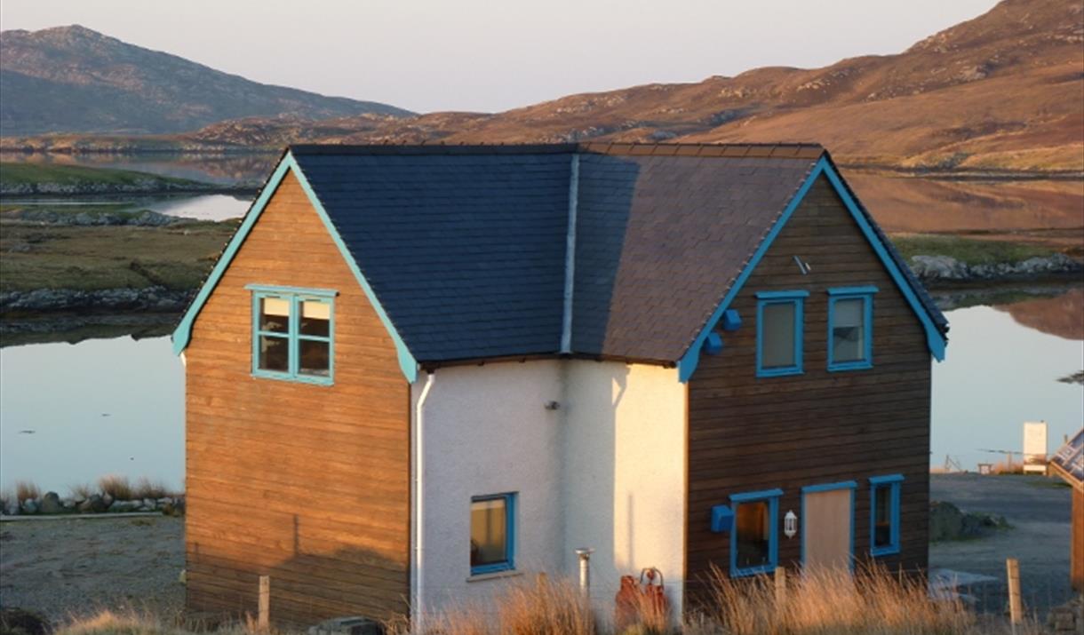 Architect designed and built in 2004, Baymore House features a spacious upstairs lounge with a fabulous view over Baymore (Bagh Mor - big bay) which is a wonderfully sheltered and scenic anchorage. Beyond the bay the view encompasses the rugged island of Ronay where red deer roam free and eagles fly overhead.