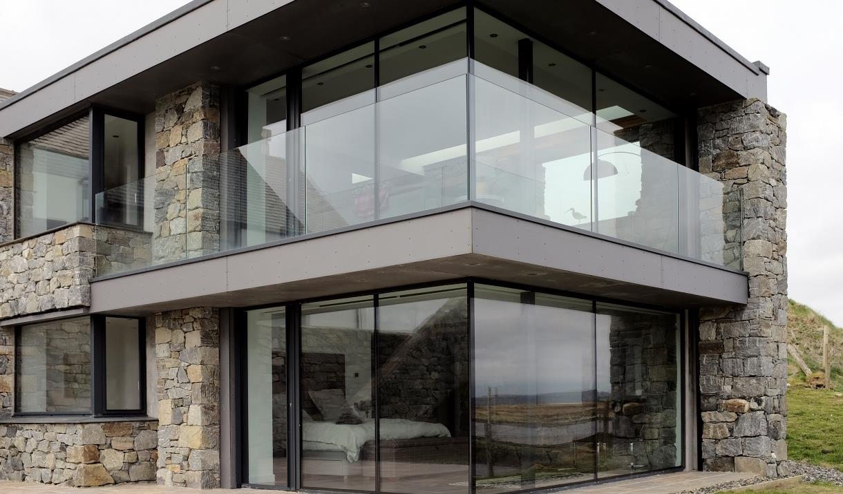 Beacon Light is a large stunning grand designs type house built on 3 levels with an architectural glass and granite addition to an original Dualchas designed house. The new part of the house has 2 glass walls and 2 granite walls inside with corridors that have glass ceilings to let the light filter into them with stunning lighting. The way the granite and glass house is joined to the original Dulchas house is a feature and a very clever design by the architect. The house has underfloor heating in every room with the floors being stone tile or oak. A glass balcony surrounds the new lounge with access through a glass sliding door