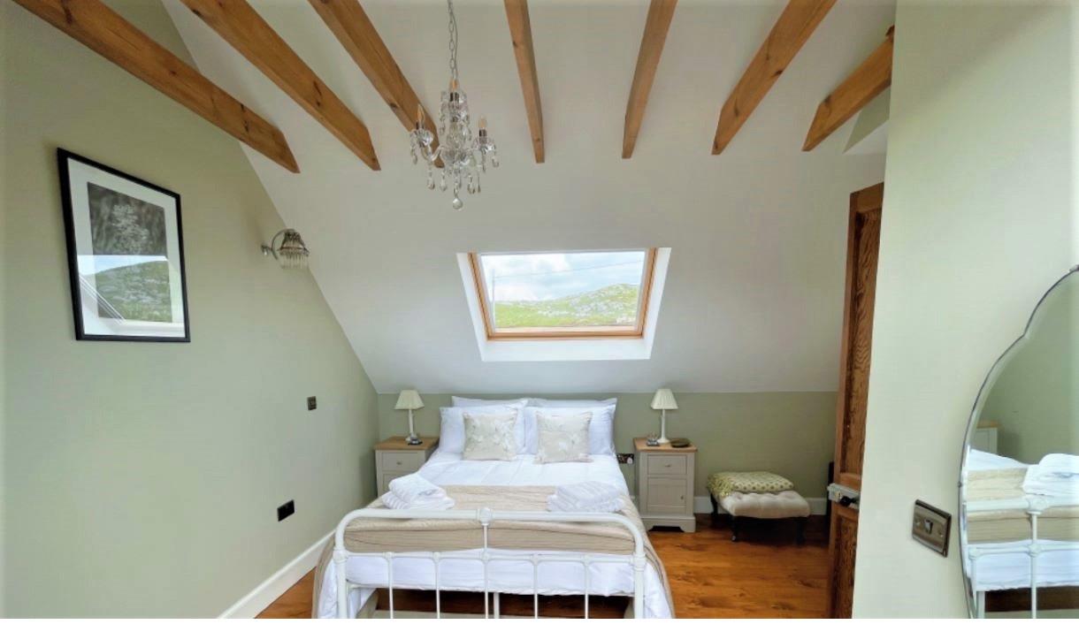 Sympathetically designed to reflect the quaintness and charcter of the original crofthouse while providing modern comforts. The décor of the well appointed accommodation incorporates local reclaimed materials,artwork and unique pieces created on the Islands. It is accessed through its own private, secluded entrance and garden area, Compromising of an open plan kitchen/dining/living area, the handmade kitchen is well equiped including a range cooker, espresso coffee maker, fridge freezer, microwave and bespoke dining nook. Comfortable seating, smart internet TV, radio, dvd player and a selection of games and books are also to be found. Additionally Dirascal has one spacious, light and airy double bedroom and charming bathroom. Crisp white linens and towels are provided, as too are superfast broadband and Wi-Fi.