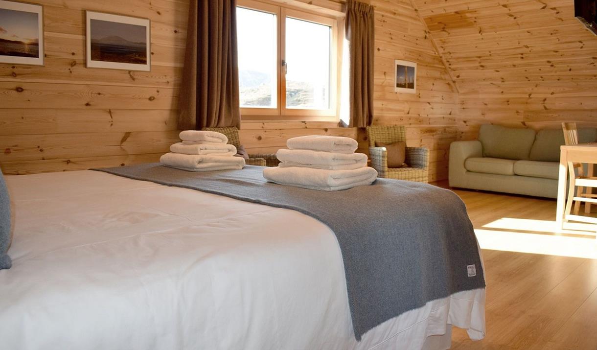 The lodges can be used as a base for exploring Harris, Lewis and further afield. The lodges are situated on the South East coast of the Isle of Harris overlooking the beautiful Loch Finsbay. The lodges are ideal for a family holiday or going away with friends - solid timber luxury lodges, which all sleep six people, and have superb facilities and spectacular views of the Harris hills and surrounding lochs. Each lodge is equipped with a fully fitted kitchen, living room, bathroom, and various bedrooms. One of our lodges also boasts a conservatory with spectacular views, and a highly sought after sauna. Other guest facilities include internet connection, cosy underfloor heating, ample parking, garden furniture to enjoy the beautiful island surroundings, and our Arran Lodge is dog friendly.