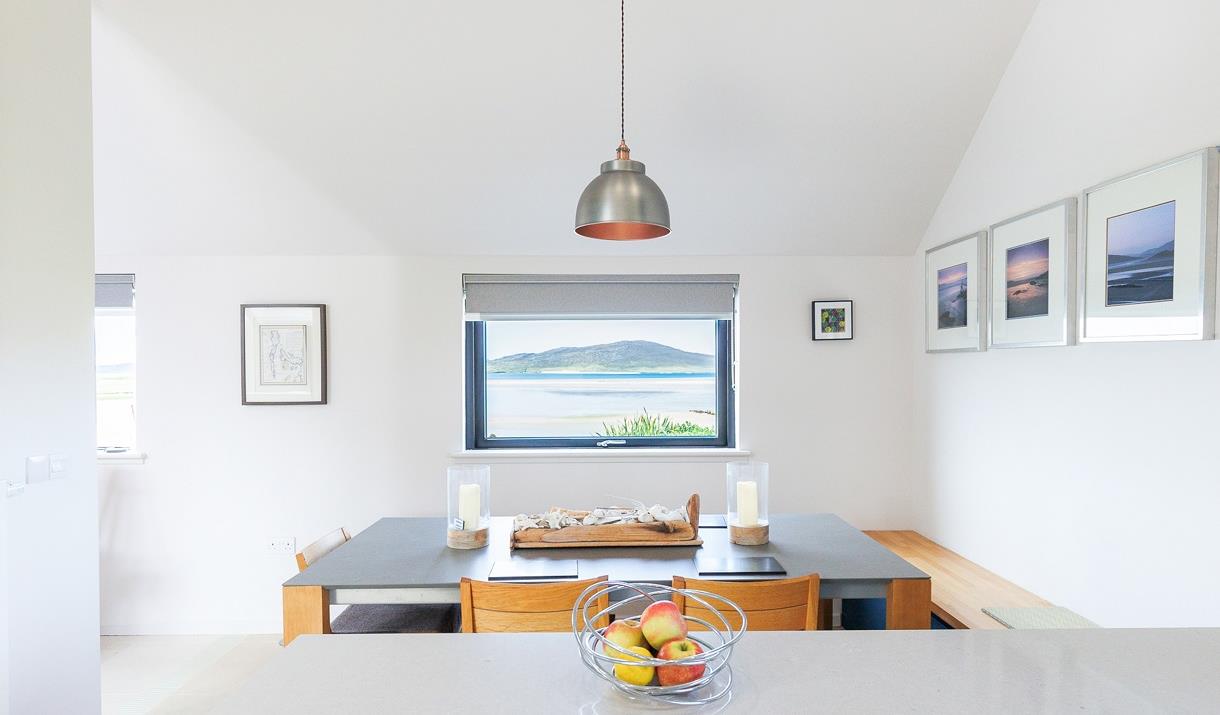 Fir Chlis is a detached, architect-designed beachhouse, which provides the perfect luxury retreat for either a couple, family, or group of friends. The house Is in Seilebost on Harris’s west coast, with 270-degree views over the white sands of Luskentyre Beach and the North Harris hills beyond.