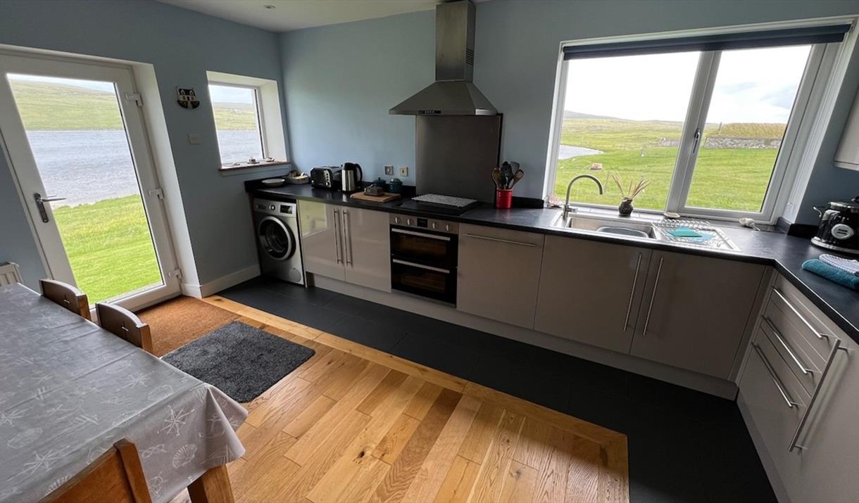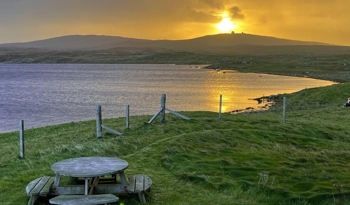 Our self catering cottage in North Uist sits beside beautiful Loch Hosta with stunning views over the loch and the surrounding wild Hebridean landscape. White-tailed and Golden Eagles can regularly be seen soaring over the hills opposite and frequently over the loch in front of the house. The beautiful sweeping sandy Hosta Beach (Traigh Stir) is a 5 min walk from the house. The surrounding machair is a haven for flowers, wildlife, bees, butterflies and corncrakes. On a clear night with virtually zero light pollution the night skies are a sight to behold.