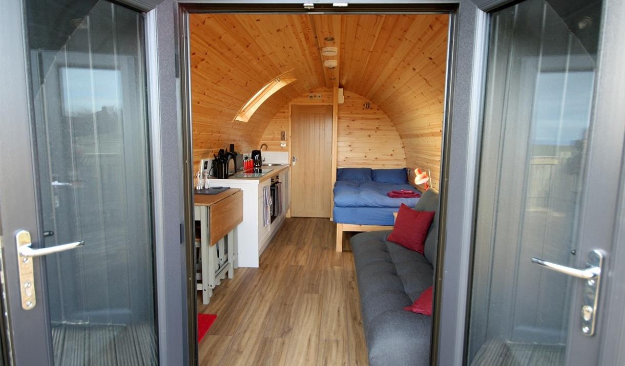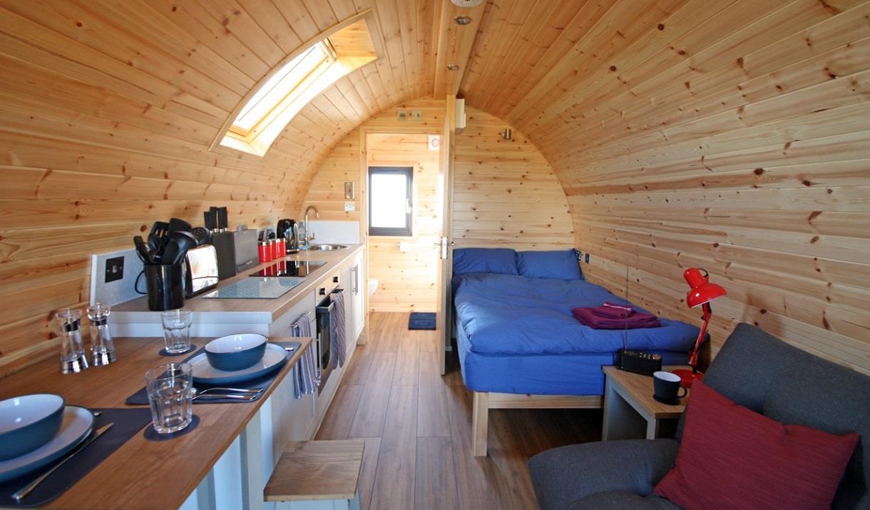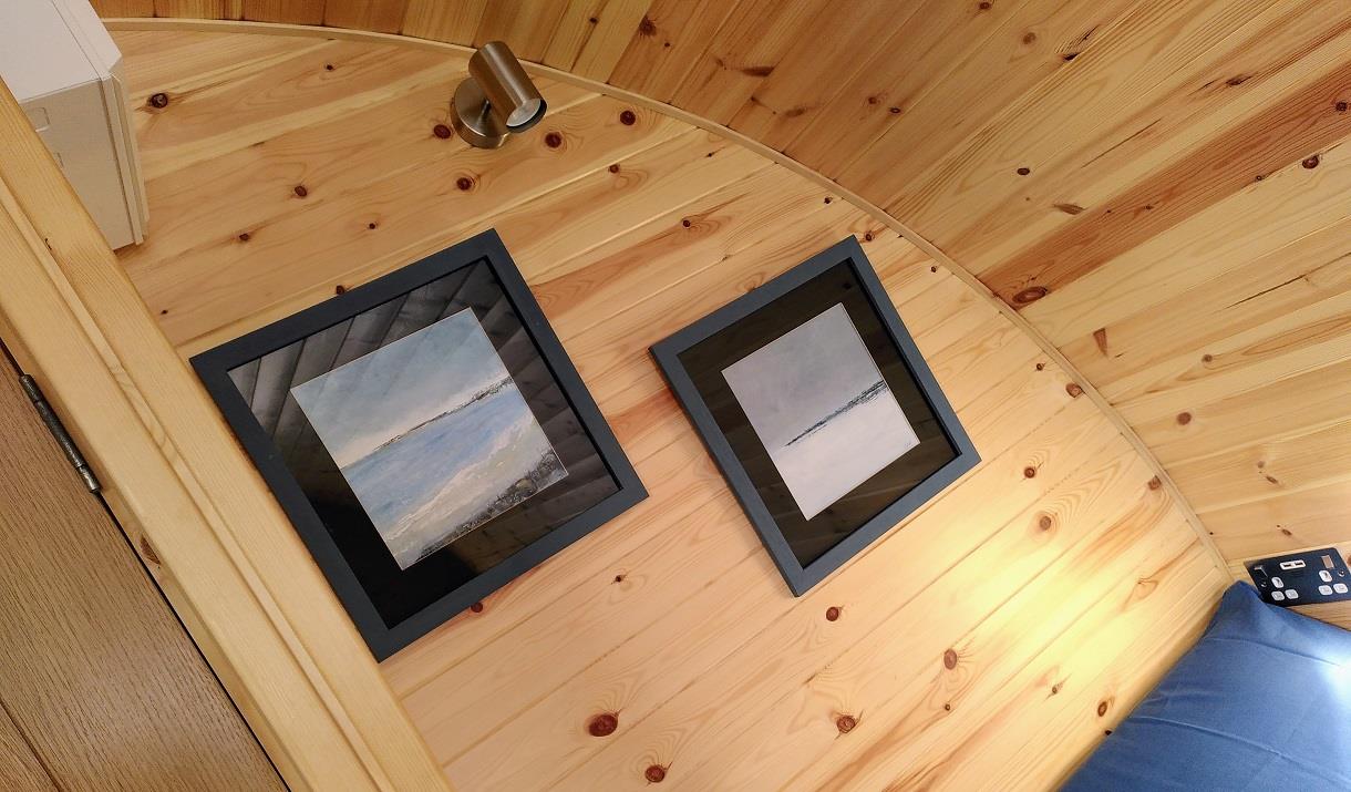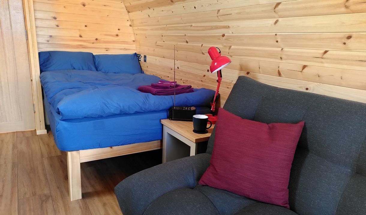 This is a cosy pod that sleeps 2 people with a double bed and a double sofa bed. You have a kitchenette and a toilet/shower en-suite. There is a small dining area, free Wi-Fi and TV. The pod is on the grounds of our family home which also houses my bookbinding workshop. The pod has its own access from our shared car park and a spacious front decking to enjoy the evenings and a beautiful view.