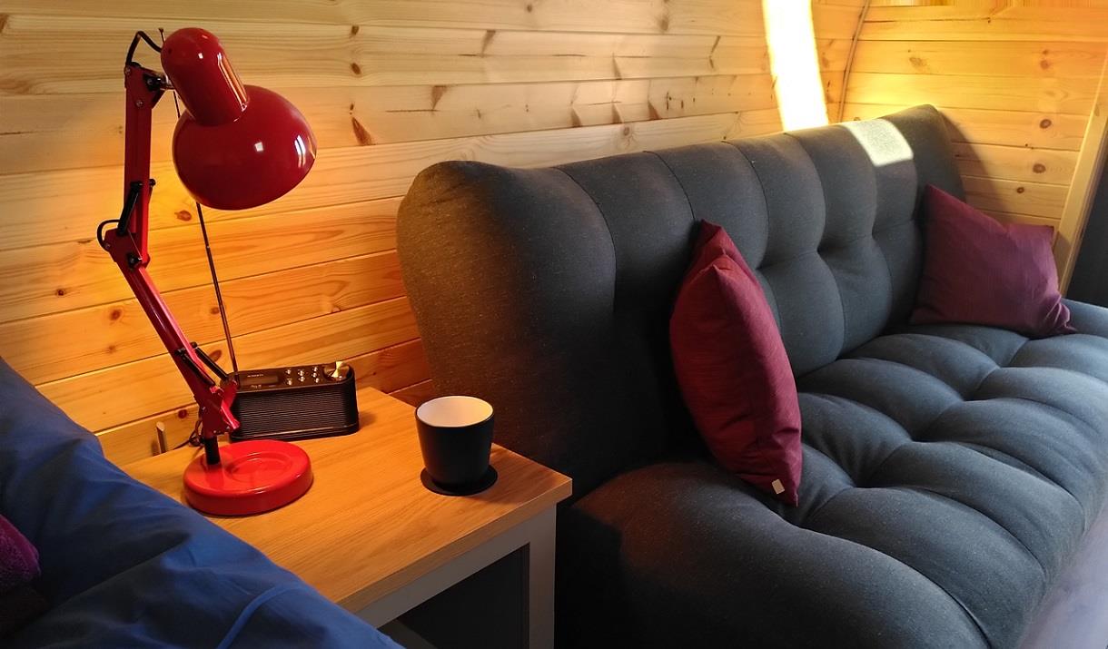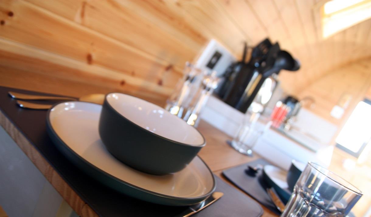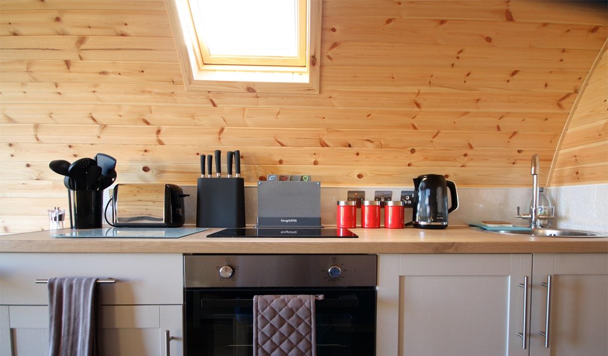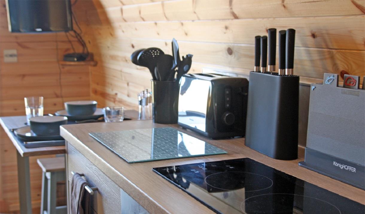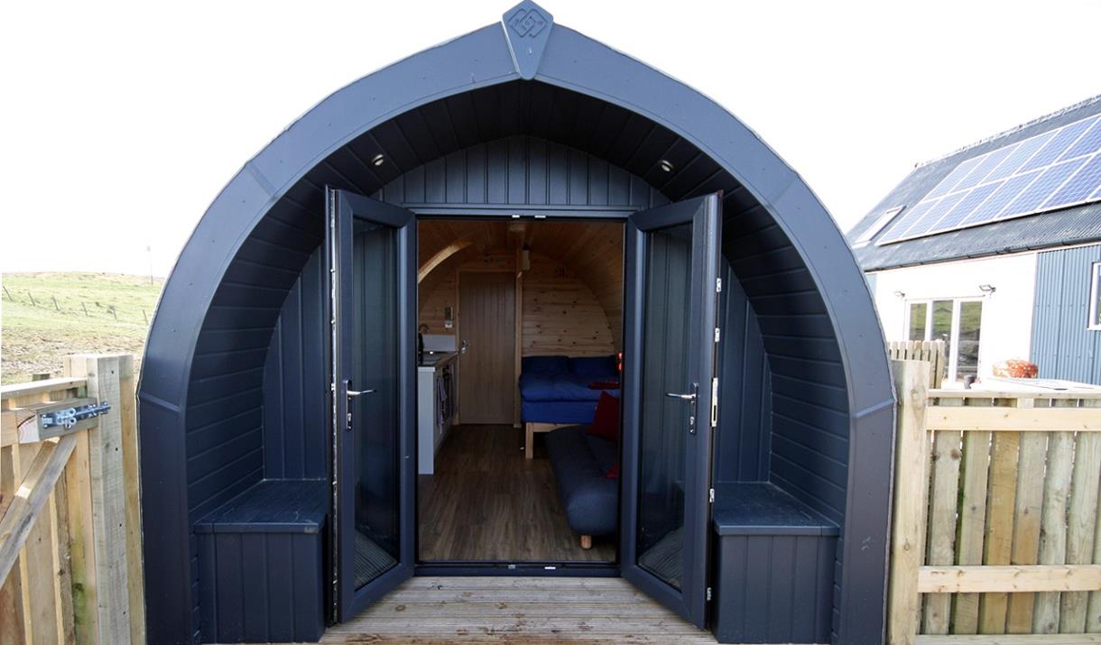 This is a cosy pod that sleeps 2 people with a double bed and a double sofa bed. You have a kitchenette and a toilet/shower en-suite. There is a small dining area, free Wi-Fi and TV. The pod is on the grounds of our family home which also houses my bookbinding workshop. The pod has its own access from our shared car park and a spacious front decking to enjoy the evenings and a beautiful view.