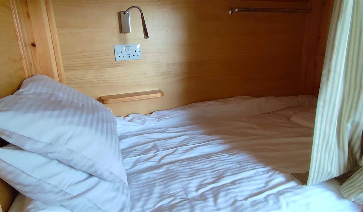 Grinneabhat is a community owned cèilidh/meeting place with contemporary self-catering accommodation. We have four en-suite rooms: the downstairs Eala room is a fully wheelchair accessible twin/double, while upstairs there are three rooms with comfortable, curtained ‘box bed’ style bunk beds. Feadag sleeps two and Uiseag and Curracag each sleep four. One of the bunk rooms can be booked by the bed, the other two are bookable by room only. Groups can book sole use of the accommodation. There is a spacious kitchen with a large dining table and a small table with window seating.