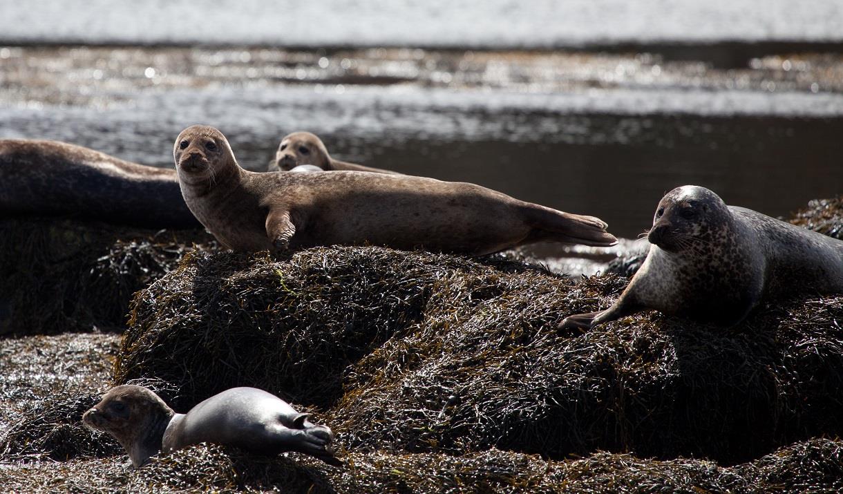 The clear blue Atlantic waters provide a great feeding ground for marine mammals: otters, seals - both grey and common - various dolphins, porpoise, minke whales, killer whales, pilot whales, basking sharks and even the elusive sunfish. Amongst the local bird life there are sea eagles, golden eagles, gannets, fulmars, terns, divers, guillemots, razorbills, shearwaters and eider duck.