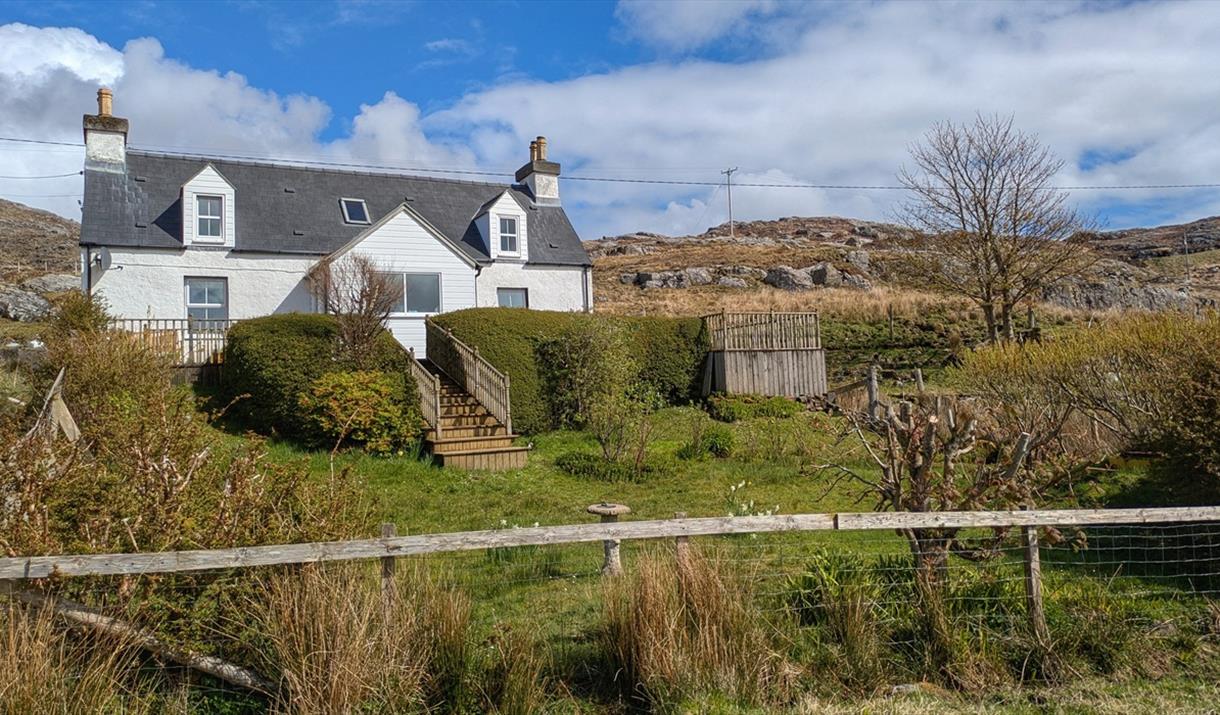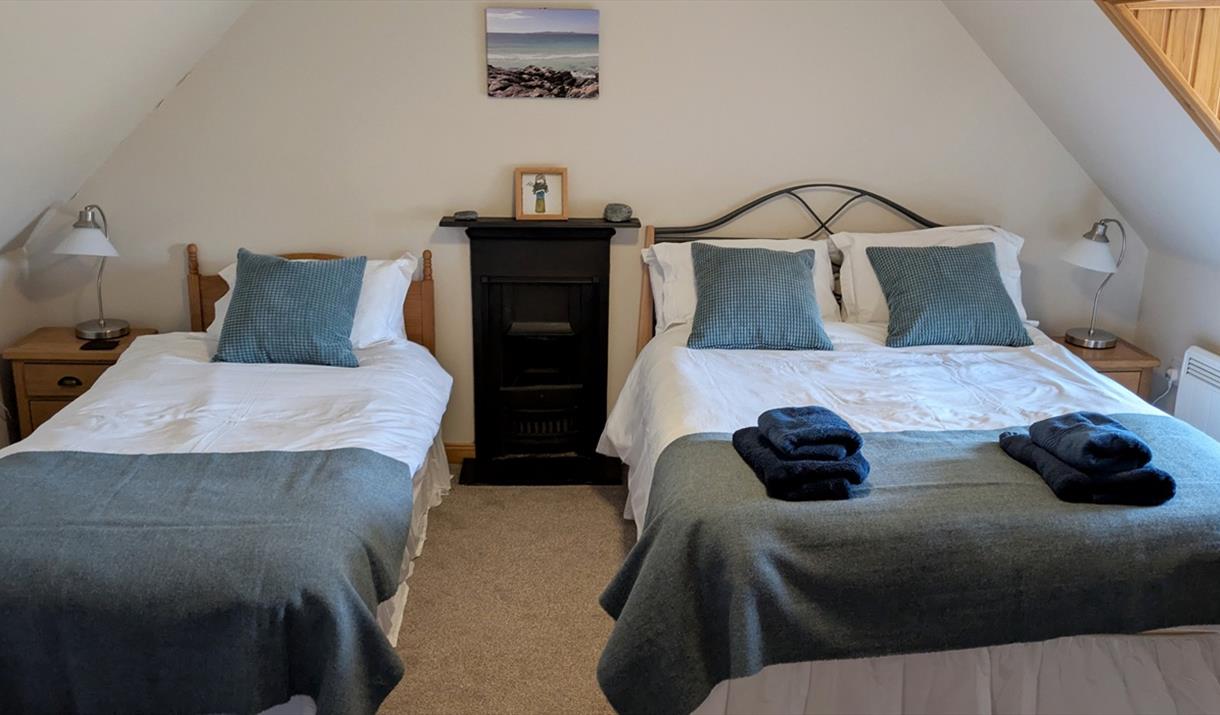 Located just outside Tarbert, this refurbished traditional cottage sits overlooking the sea and is ideally placed for exploring the whole island. Strathview sleeps up to 5 people – one kingsized bedroom and one with double and single bed. Sofabed in lounge/travel cot available. Well equipped kitchen, cosy lounge, small sunroom - ideal for watching for wildlife. Large outside decking area. Linen, electricity, heating, towels and enough coal for an open fire are included in the price.