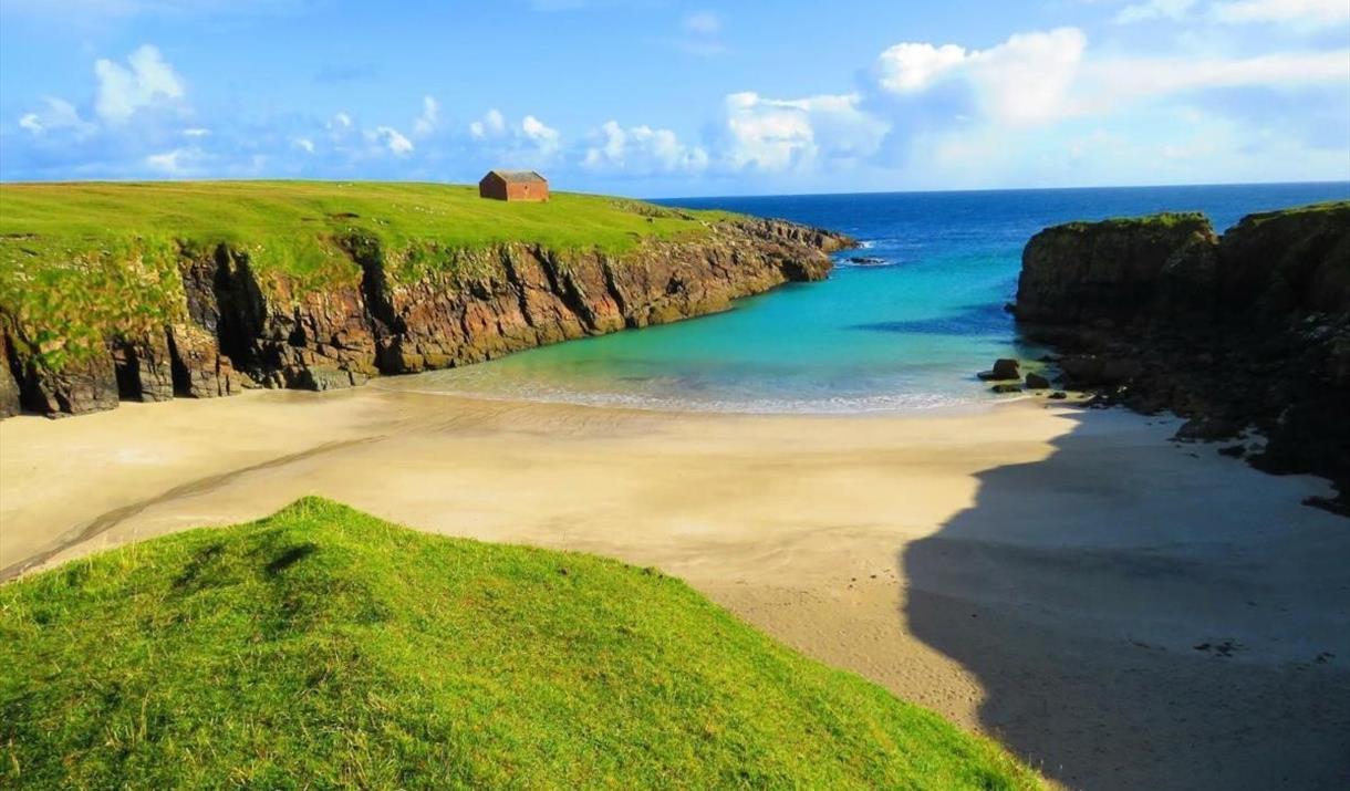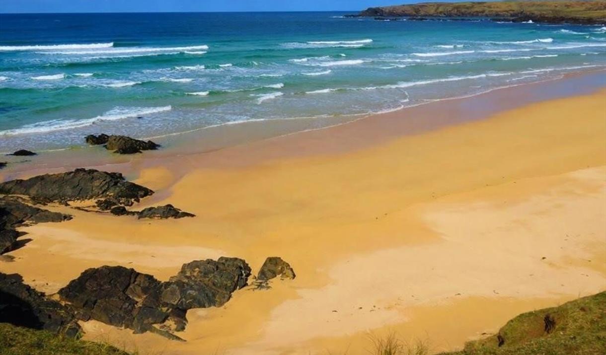 The beach has white sand, made up from broken shells. The machair runs parallel to the beach and is…