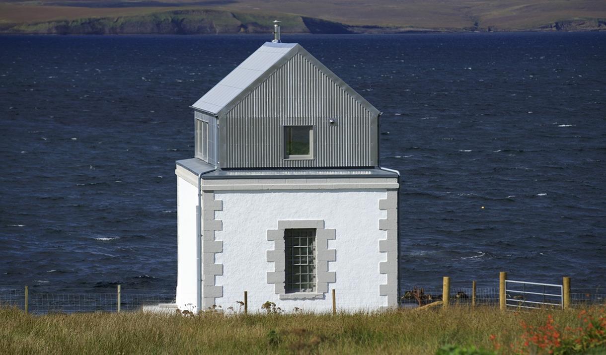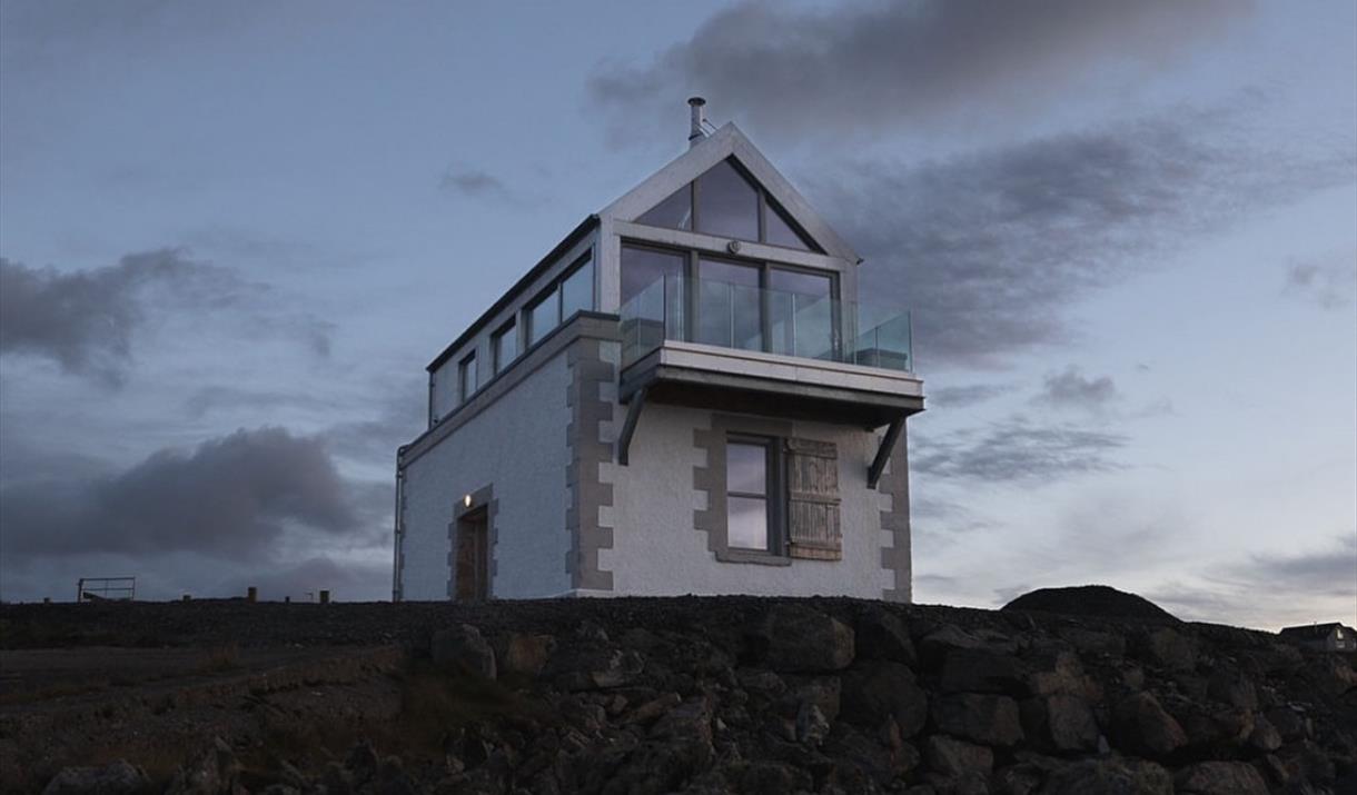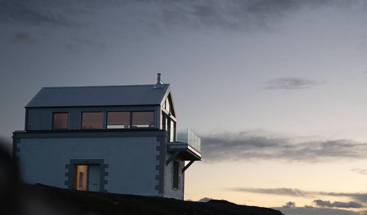 Overlooking Broad Bay on the Isle of Lewis, The Bunker is a beautifully restored historic coal store offering a unique and tranquil self-catering retreat. Built in 1900 to store the coal for the nearby Tiumpan Head Lighthouse, The Bunker’s foundations pay homage to its hardy past, accompanied with aluminium cladding with reflective capabilities that help blend The Bunker into the landscape.