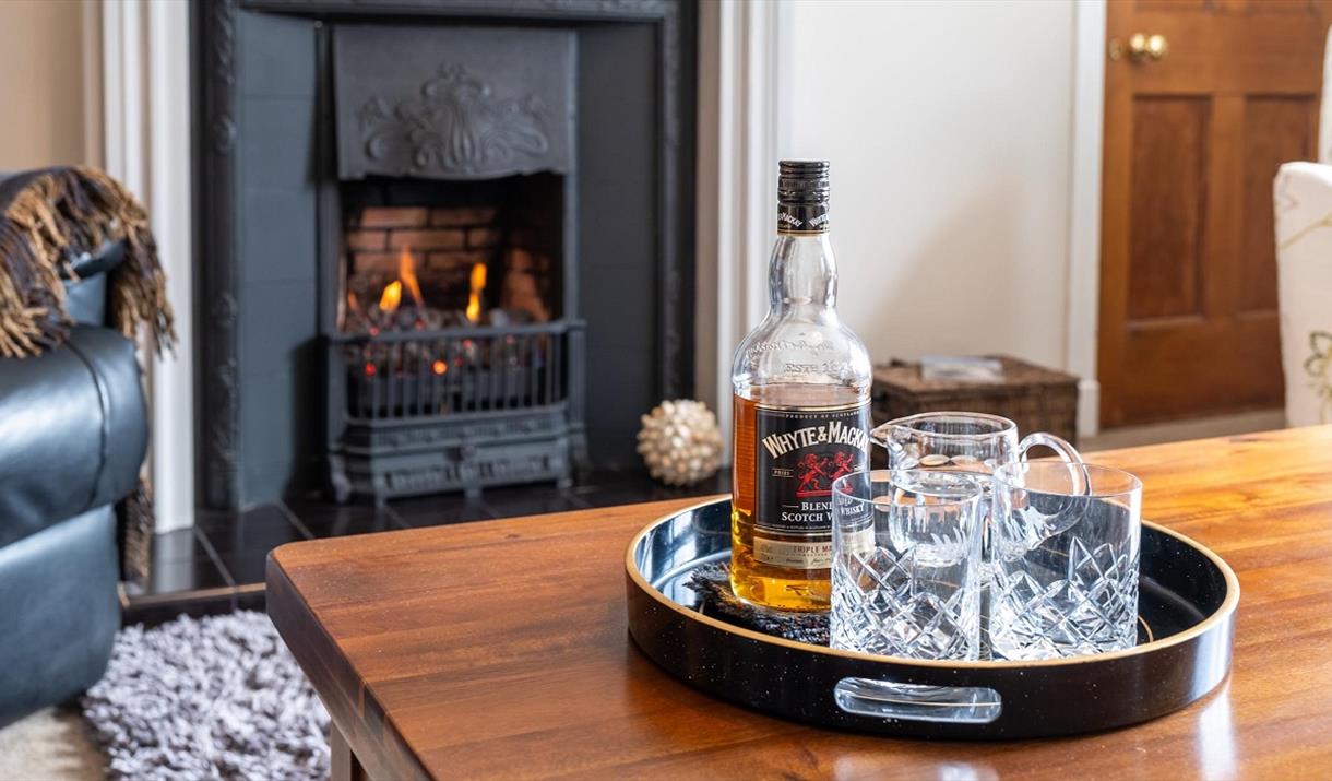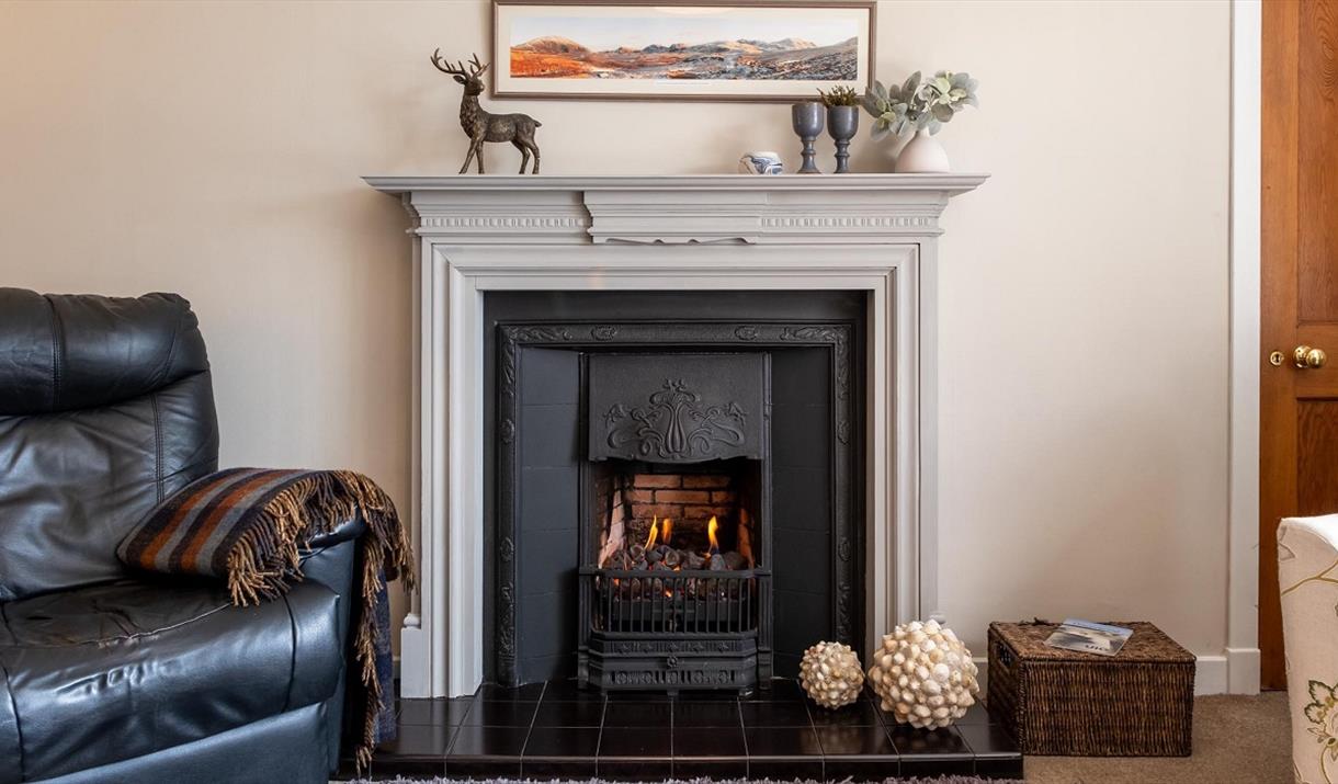 The spacious and comfortable living room is equipped with a Smart TV and gas fire.