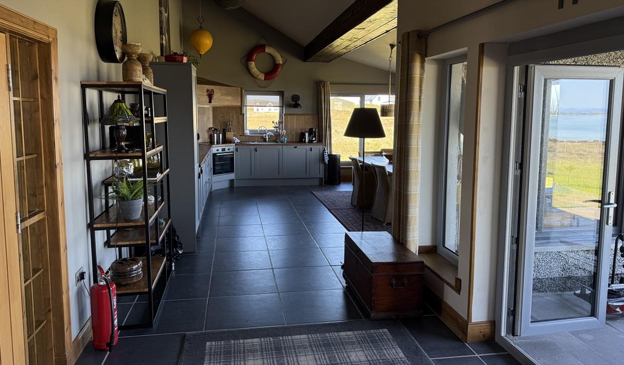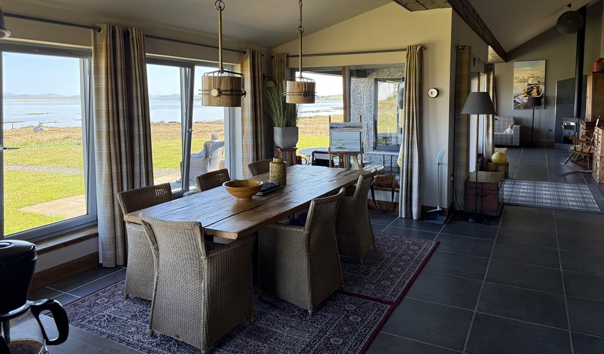 In front of the house is an indoor terras as well as a large outdoor terrace from where a private path leads to the beach. At low tide the exciting tidal walk across wet sands to the uninhabited island of Vallay can be undertaken.!