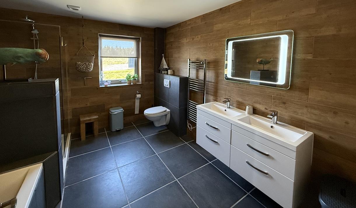 In the atmospheric kitchen you will find a large wooden dining table where everyone can gather around after an exciting day of exploring the island. The livingroom contains several comfortable chairs and couches ,all set around the woodburning stove and a television. ( 60 inch smart tv)