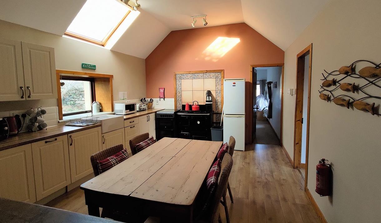 The cottage has two bedrooms, one with a king-sized bed and one with two singles. The kitchen is spacious, this is where you eat and discuss which beach is the most beautiful. The lounge with a view of the garden has a TV and a fireplace, ideal to sit and learn what "relaxing" is in Gaelic. The bathroom has a bathtub / shower.
