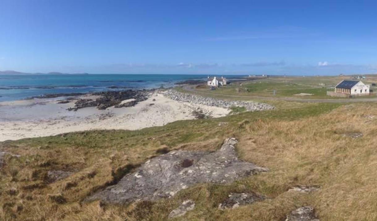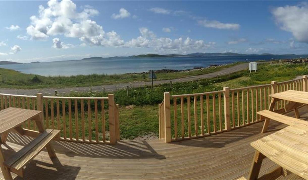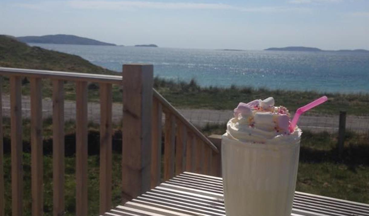Kilbride Cafe is at Cille Bhrighde on the south shore of the Outer Hebrides island of South Uist, by a beach of white shell sands and adjacent to Kilbride Campsite. Its stunning location overlooking the Sound of Barra, 4 miles from Eriskay/Barra ferry is the ideal stop whenever you are in the area, on the main bus route, it is easily accessible for all.