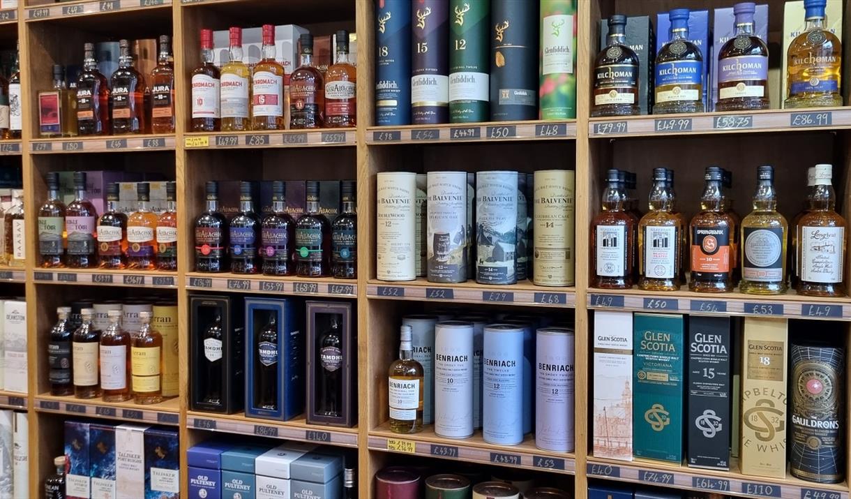 The Island Spirit Whisky Shop offers a wide range of Scotch and international single malt and blended whiskies, and with almost 500 whiskies and over 100 Scottish Craft Gins in stock there’s something to suit every palate and budget. Being a specialist whisky shop, it is a stockist for many hard to find and exclusive brands of Scotch Whiskies and it’s a haven for whisky drinkers and collectors alike. They are stockists Abhainn Dearg Whisky from the only distillery on the Isle of Lewis and also The Hearach Single Malt from The Isle of Harris Distillery. They also specialise in Hebridean Gin’s including, Harris Gin, Downpour Gin, and Isle of Lewis Gin. The shop well stocked with craft vodka, craft rum, bourbons, wine and other premium spirits.