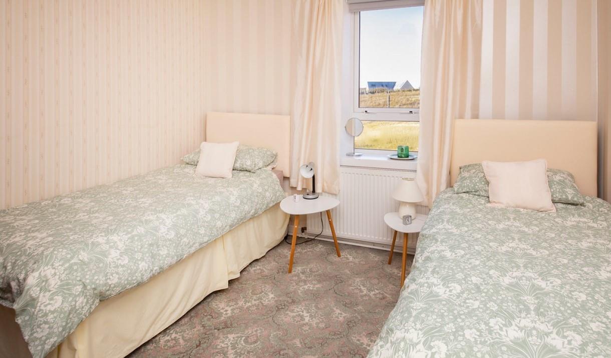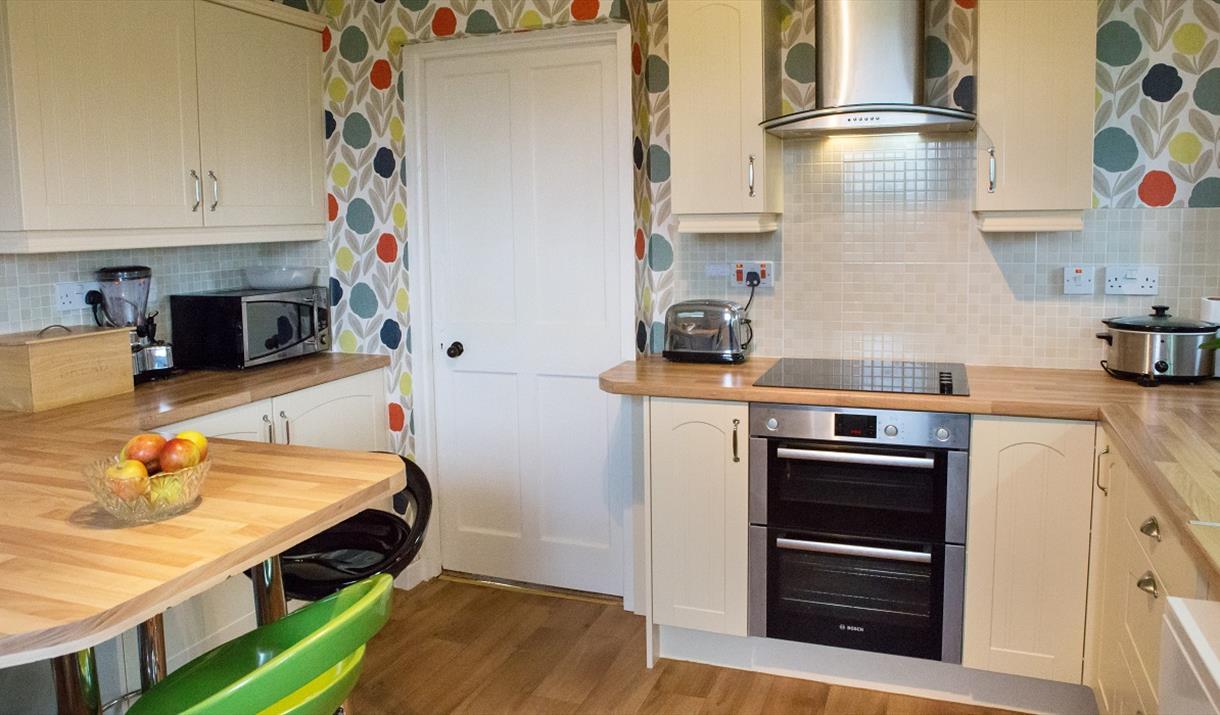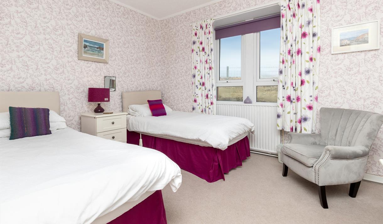 The house is a bungalow and excellent for people who require good access. It has a modernised kitchen and bathroom with 3 bedrooms sleeping 6 people. The kitchen is bright and has all modern conveniences such as washing machine, dishwasher, fridge and freezer. There is a breakfast bar and also a pull out table in the living room. The bathroom has a spacious shower with a safety rail. The bedrooms are a good size with a master double bedroom and two bedrooms with single beds.