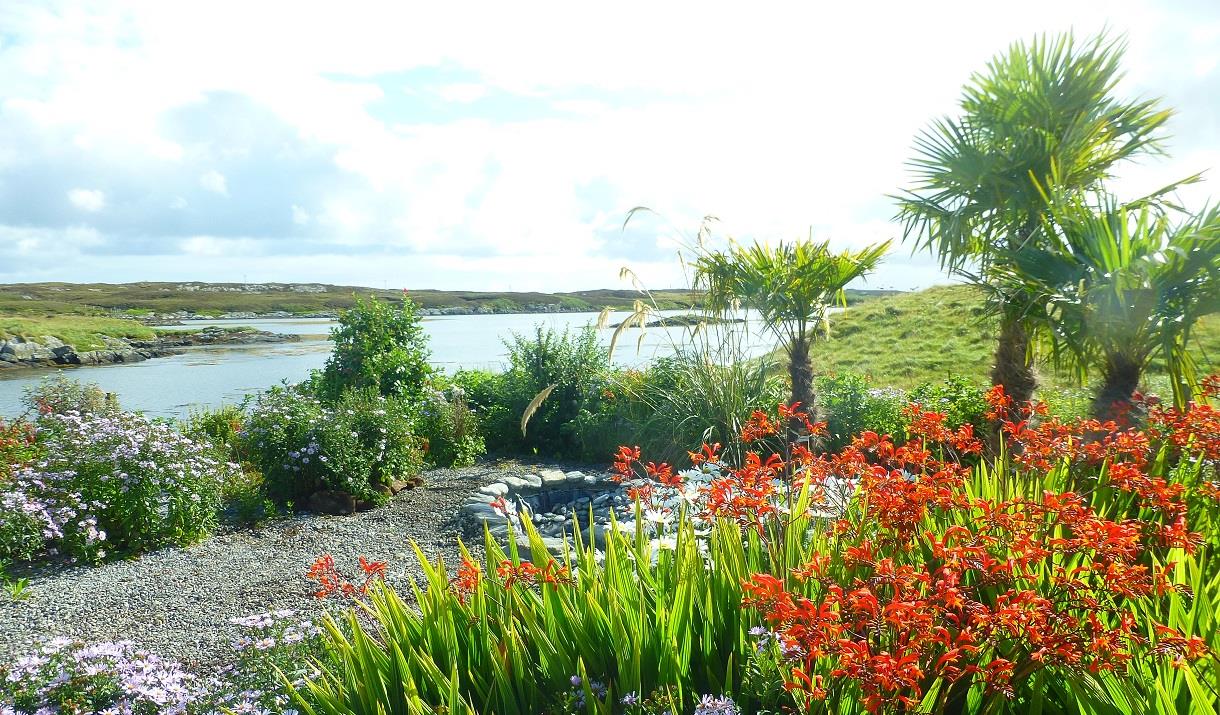The mainly gravel garden includes a herb boat to help bring your cooking to life. There is a Rolec 3kW EV charger (Extra charge for electricity used), gates to the small headland beyond the cottage, and the beach to the side.