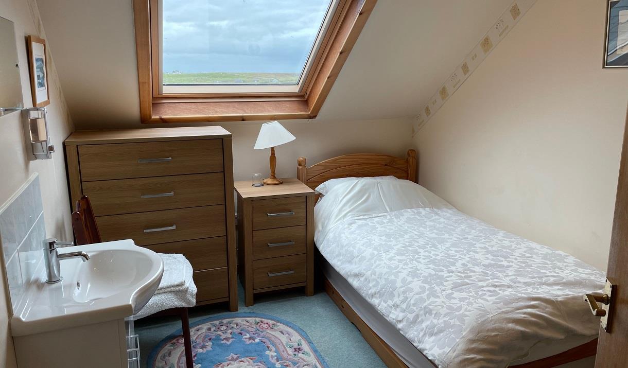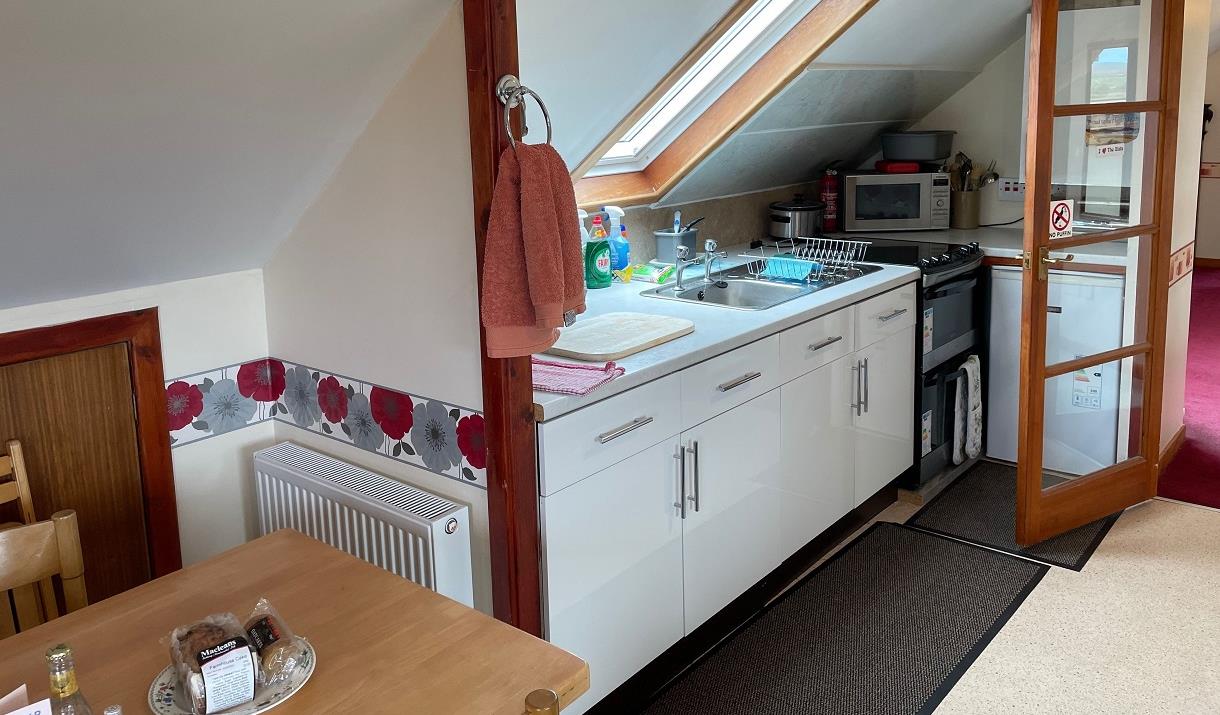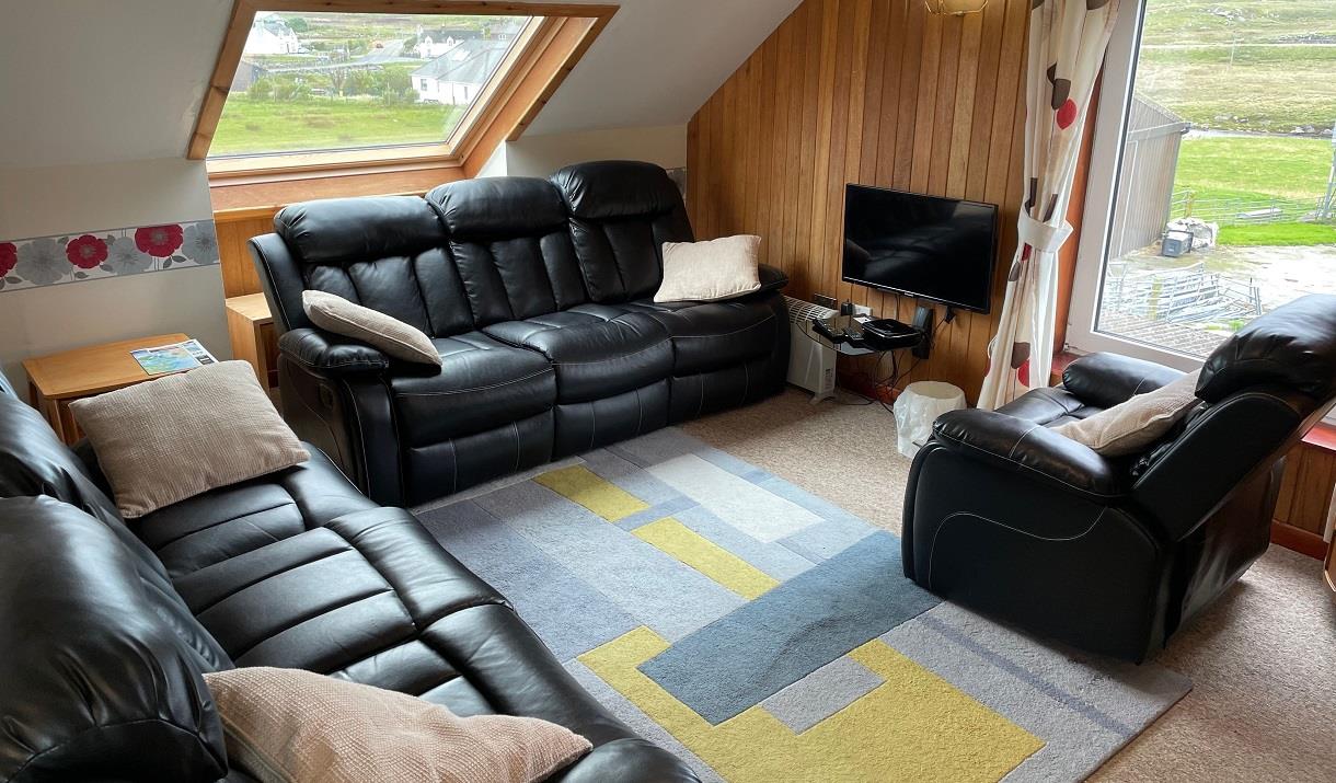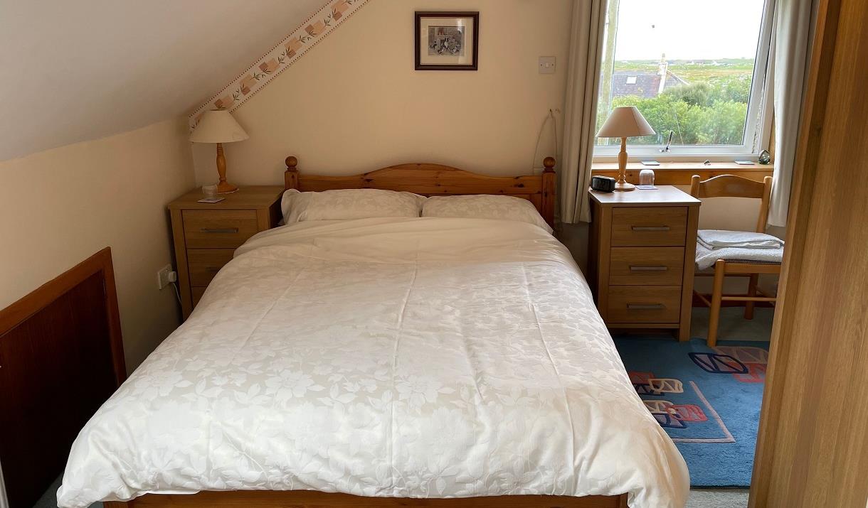 The apartment comprises a double/ensuite bedroom with shower, single bedroom with wash basin, twin bedroom, bathroom with bath and shower, livingroom/ kitchen with good facilities dishwasher, washing machine, tumble dryer, micro wave and electric cooker, fridge and freezer. Free wifi, satellite TV, DVD player and radio. Linen and towels provided and electricity and heating included. Situated on a working croft near the sea and beaches. Balranald bird reserve and golf course nearby. Good parking available and separate access to apartment