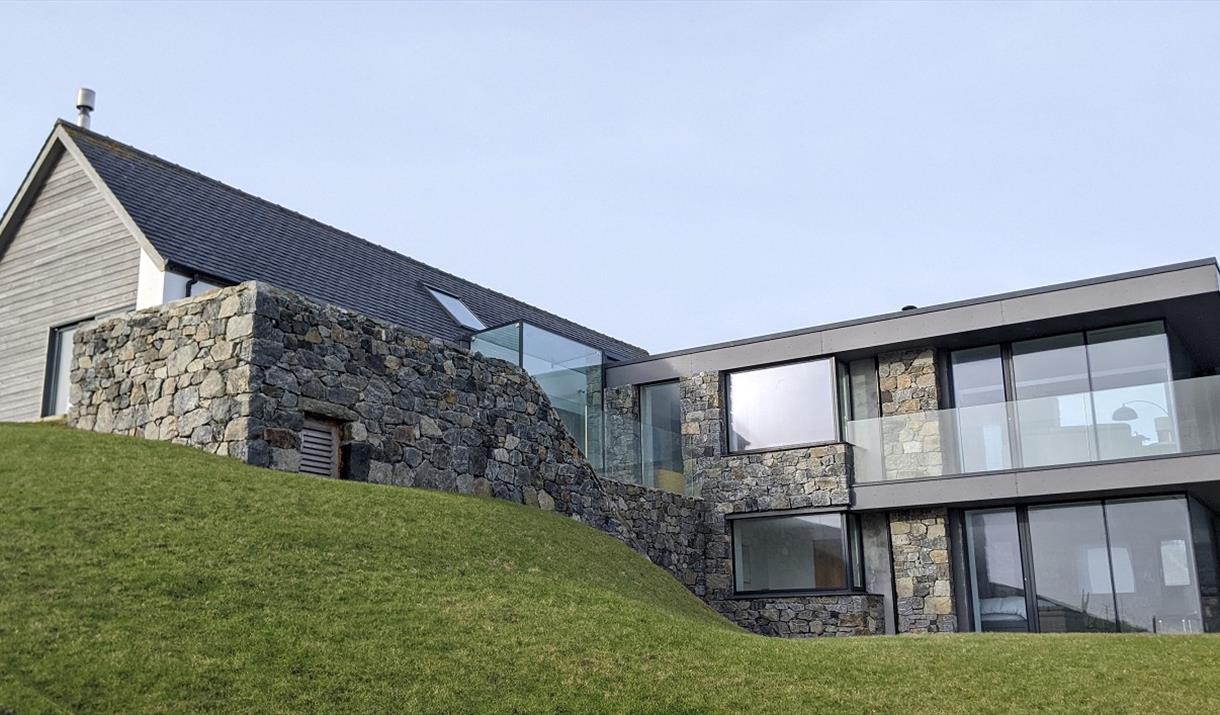 Beacon Light is a large stunning grand designs type house built on 3 levels with an architectural glass and granite addition to an original Dualchas designed house. The new part of the house has 2 glass walls and 2 granite walls inside with corridors that have glass ceilings to let the light filter into them with stunning lighting. The way the granite and glass house is joined to the original Dulchas house is a feature and a very clever design by the architect. The house has underfloor heating in every room with the floors being stone tile or oak. A glass balcony surrounds the new lounge with access through a glass sliding door