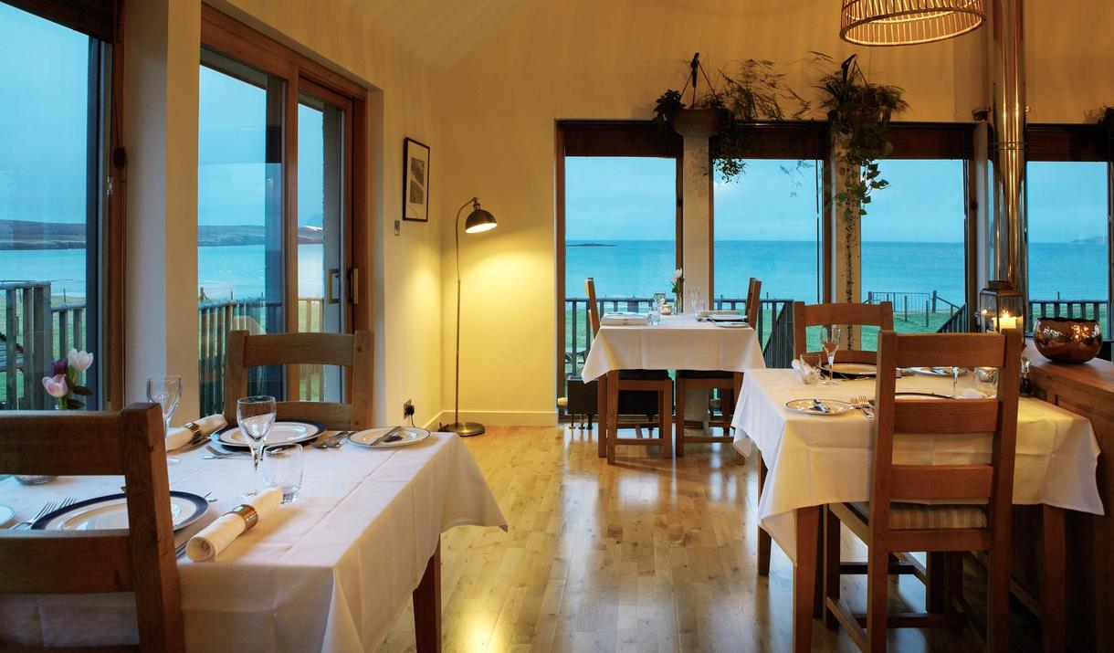 - Lounge - Our guest lounge is a stunning large room, with vaulted ceiling, oak flooring and amazing sea views from the windows all three sides. Sit outside for great sea views.