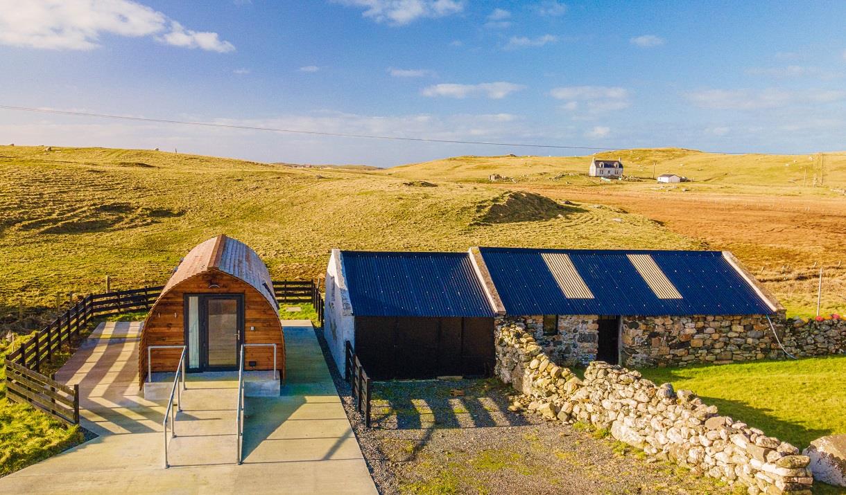 Our brand new Cnoc nan Uan Lodge is spacious and fully adapted for disabled but is also suitable for guests of all abilities. It is wheelchair accessible and has a large private toilet/shower room complete with shower chair. It is on the west side of North Uist, close to outstanding beaches and the world-renowned Balranald Nature Reserve.