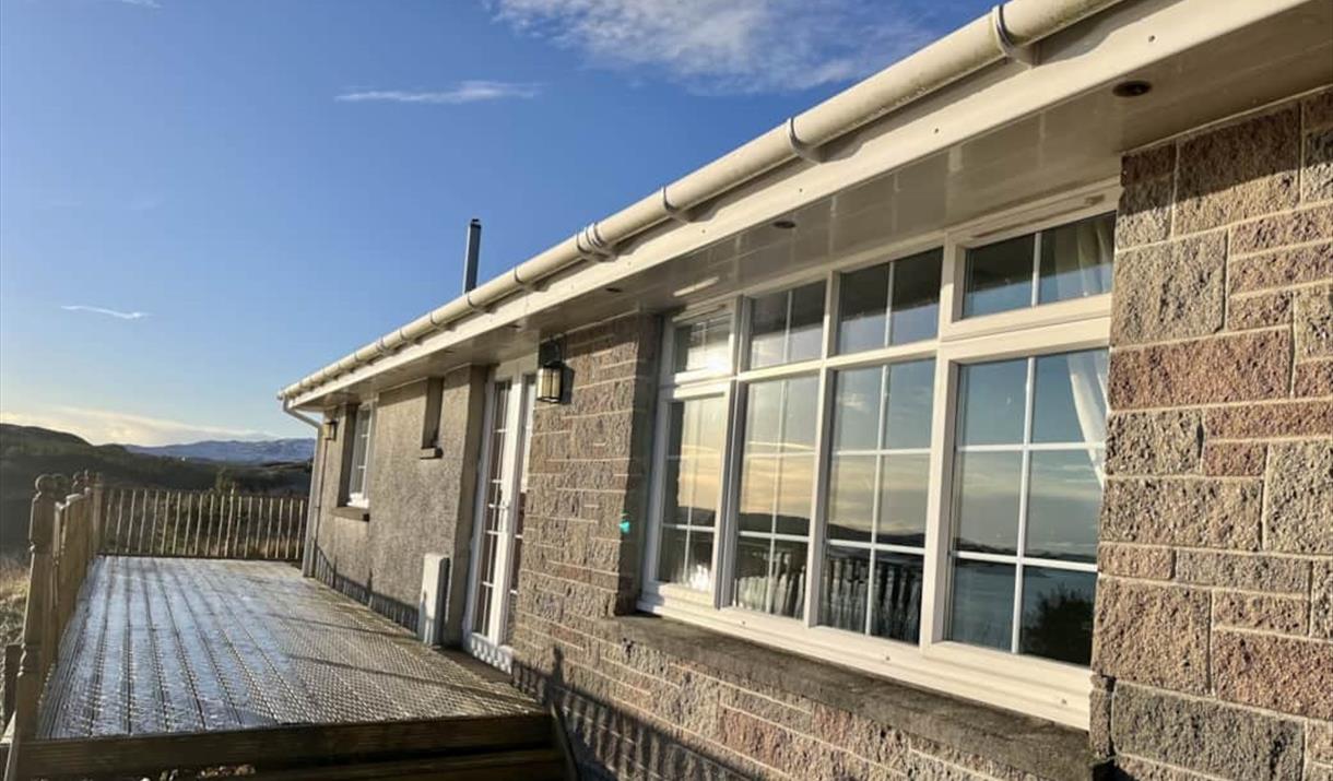 Dalhanna is a charming 3 bedroom self catering cottage in Tarbert on the Isle of Harris. Accommodation comprises of a king sized bedroom, a double bedroom and a twin bedroom with a family bathroom and a shower room. The fully equipped dining kitchen sits 6 guests at a large dining table and the lounge with wood burning fire looks out over a spectacular sea view. The wrap around decking provides beautiful views of the sea, the village and the dramatic scenery Harris has to offer.