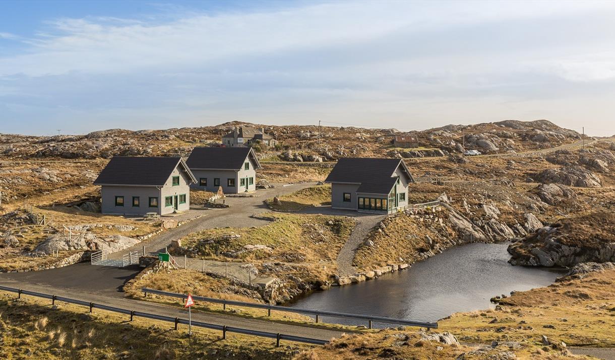 The lodges can be used as a base for exploring Harris, Lewis and further afield. The lodges are situated on the South East coast of the Isle of Harris overlooking the beautiful Loch Finsbay. The lodges are ideal for a family holiday or going away with friends - solid timber luxury lodges, which all sleep six people, and have superb facilities and spectacular views of the Harris hills and surrounding lochs. Each lodge is equipped with a fully fitted kitchen, living room, bathroom, and various bedrooms. One of our lodges also boasts a conservatory with spectacular views, and a highly sought after sauna. Other guest facilities include internet connection, cosy underfloor heating, ample parking, garden furniture to enjoy the beautiful island surroundings, and our Arran Lodge is dog friendly.