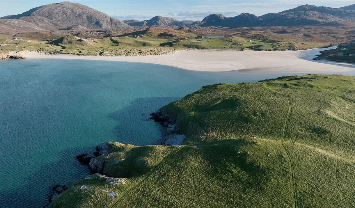 Hona is a small house in an imposing landscape of contrasts, from austere rocky mountains to soft white sandy beaches. The incredible landscape of Harris and Lewis has much to offer in terms of its dramatic natural beauty, social history, and outdoor activities such as swimming, walking, climbing, fishing, canoeing. Hona offers a comfortable and individual one-bedroom house that is well equipped to provide the perfect getaway in any season. Inside the house there are nature inspired artworks made from locally foraged material and a ‘rustic’ bathroom cabinet made from the old pews that were in the original Mission Hall that stood here, that add atmosphere and amplify the sense of place within this wild landscape. On the shelves you’ll find a selection of specially collated books, films and music that resonate with this place. When you arrive you will be greeted with a Hona tote bag containing a reflective nightcap (Hona has its own unique whisky that embodies the elemental spirit of this location), allowing you to savour and reflect on a perfect day as well as a small gift made from a seasonal found object...