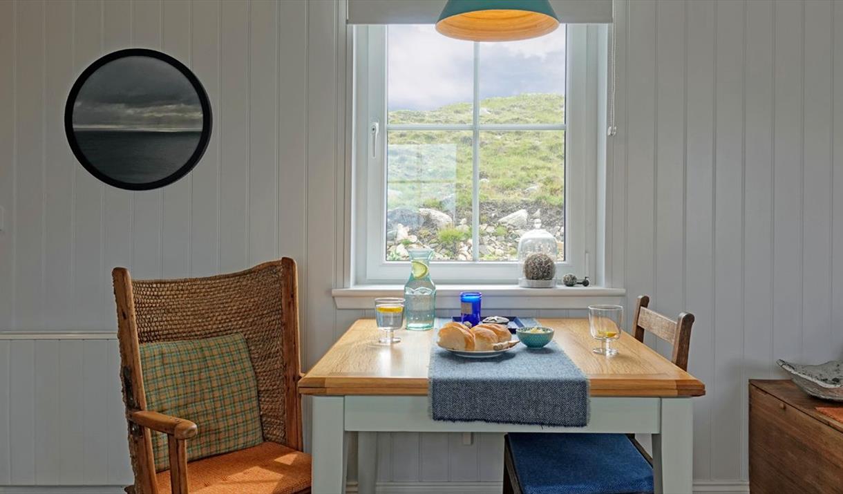 The house also contains some working tools for observation. Close focus binoculars for watching insects, birds and catching glimpses of seals, dolphins, basking sharks and whales, all local to the area. Take one of the field lenses with you on a walk to magnify your finds, revealing the architectural structures of tiny marsh plants or the whorls in a whelk shell. A series of cards detail suggested walks and places to visit during your stay (these relate to a large wall mounted aerial view of the landscape around Mangersta) and include bird-watching locations and what to look out for; the best beach to find auger shells or cowries, and where to find the best boulders. Hona’s bookshelves are stocked with helpful guides to identify wildflowers, coastal finds and geological information, as well as social historical information on the area. After a day of fresh air and exploration you can also buy fresh sea food locally and a well-stocked community grocery or visit Uig Sands for a fine dining experience with a view you’ll not forget.