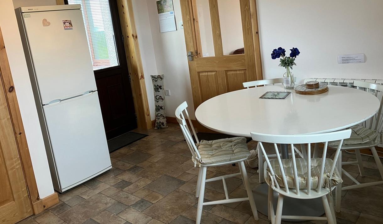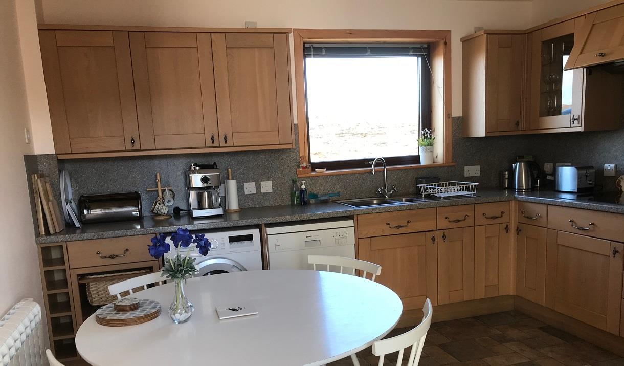The refurbished, fully-equipped kitchen opens onto a secluded patio with uninterrupted moorland views. This tranquil space is a favourite with guests. Savour the silence here to wind down after the events of the day. Enjoy stunning sunsets and the wonderful quality of the light which with no pollution, is a joy to behold. In winter, the night sky is ever changing. Whether it's the black of night or bathed in moonlight; lit by the twinkling of myriad stars or the Aurora Borealis in the northern skies, you'll want to come back for more.
