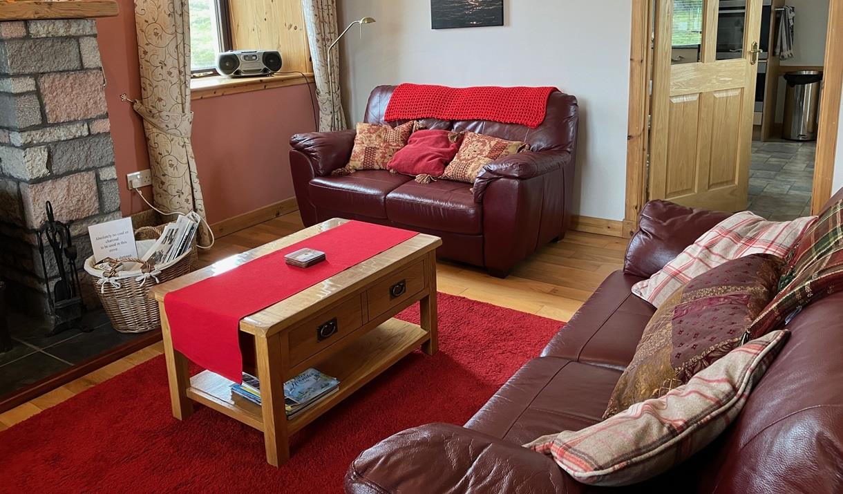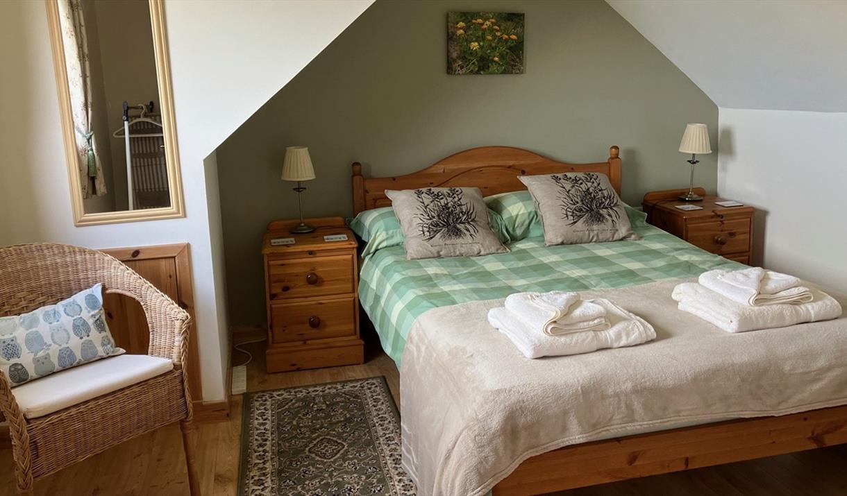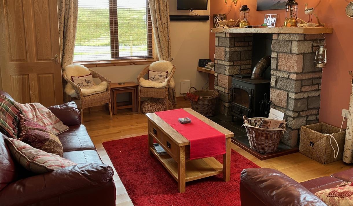 Upstairs has a double room with toilet and whb, twin room and a quiet space to enjoy fabulous views to loch, hill and sea.