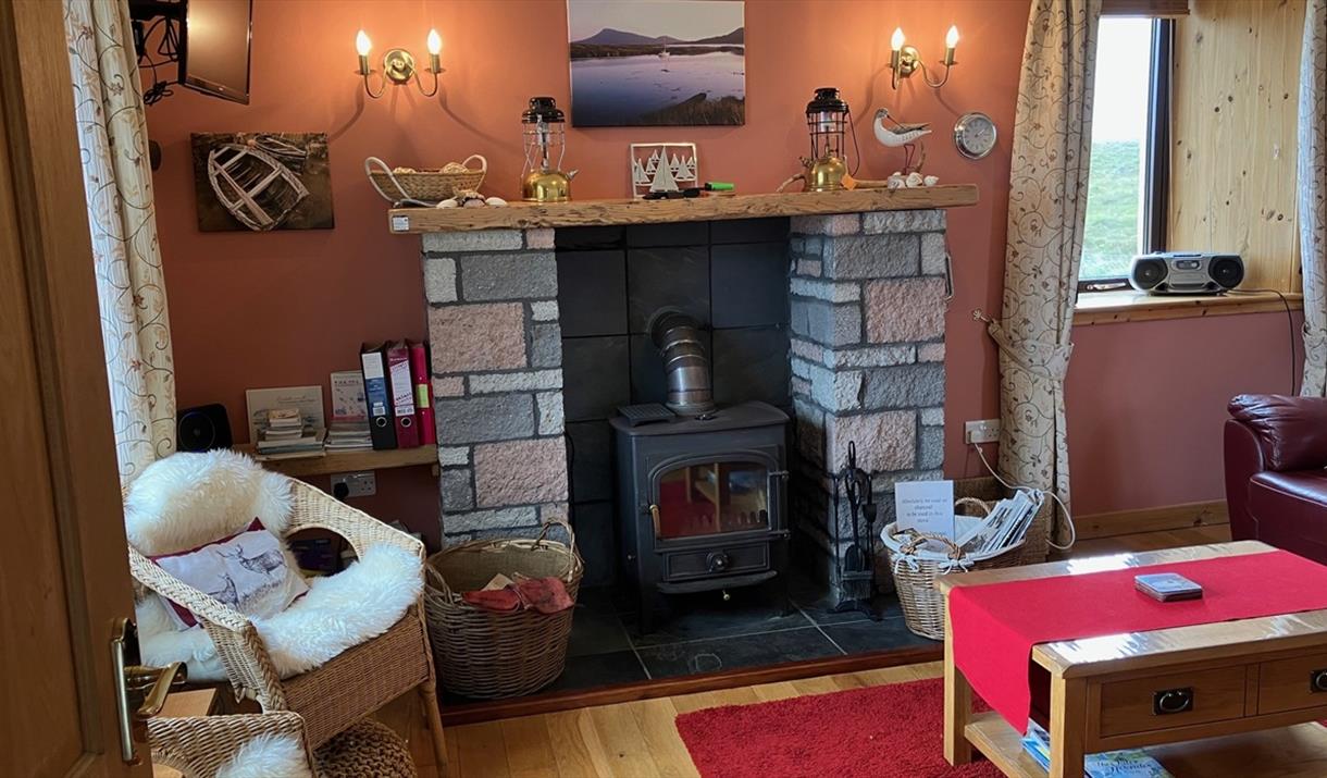 The comfortable downstairs accommodation comprises porch with original church pews, cosy living room with multi-fuel stove, solid oak floors and doors, beautiful oak finished kitchen/diner, bathroom with electric shower over bath and double bedroom. The feature mantelpiece was once part of a shipwrecked beam of wood, brought to shore by my grandfather, originally used to support the downstairs floor. This was salvaged and refurbished in his memory.