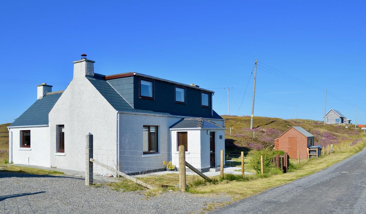 This tastefully restored self-catering cottage on picturesque Grimsay, situated between Benbecula and North Uist, is the perfect base for exploring neighbouring islands, beautiful white sandy beaches, machair and moorland. It stands in its own grounds with off-road parking for two vehicles.