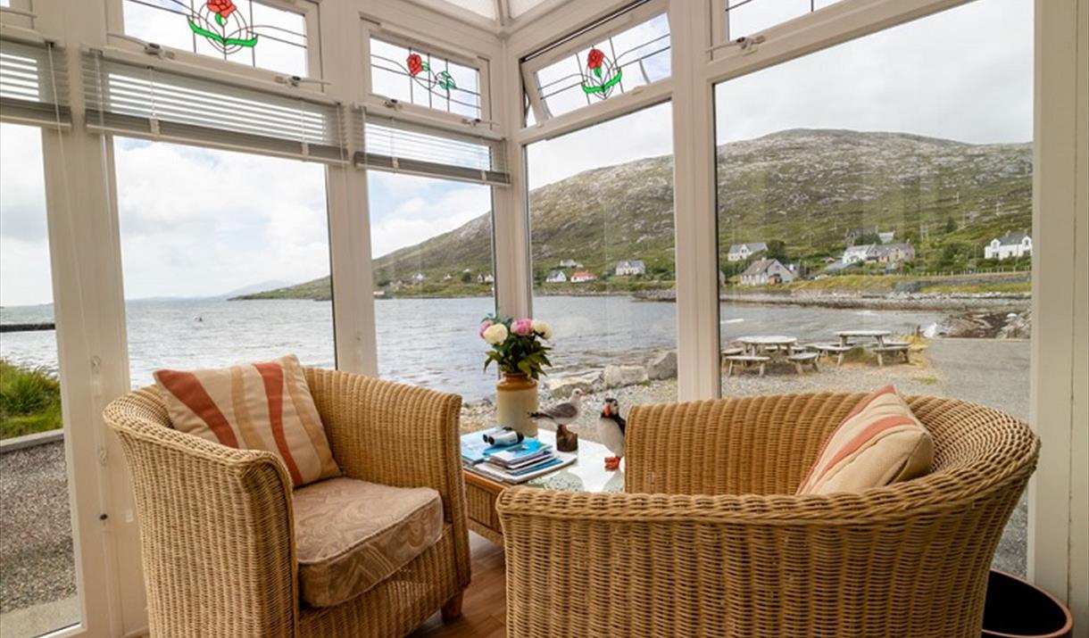 From the conservatory you can sit and relax and enjoy the ever changing sea and enjoy the spectacular sunsets.