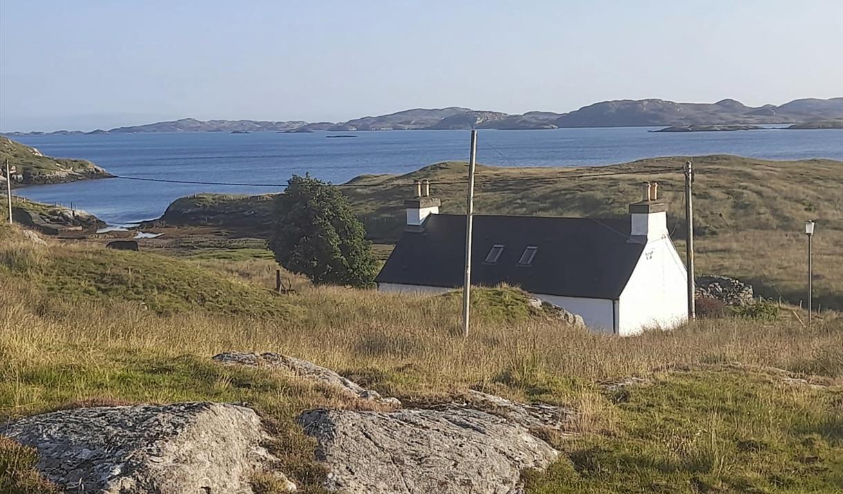 Located just outside Tarbert on the East coast of Harris, this refurbished traditional cottage sits overlooking the sea and is ideally placed for exploring the whole island. Strathview sleeps up to 6 people – one kingsized bedroom and one with double and single bed. Sofabed in lounge/travel cot available. Well equipped kitchen, cosy lounge, small sunroom. Large outside decking area. Linen, electricity, heating, towels and enough coal for an open fire are included in the price. Strathview is available to rent all year round is pet friendly.
