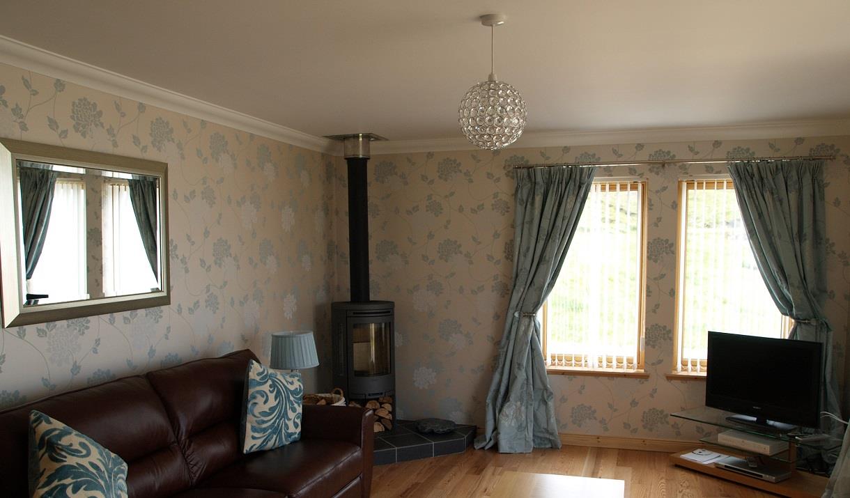 Inside there are two king bedrooms and a twin bedroom providing spacious accommodation for 6 people. The house is fully equipped with efficient ground source heat pump and log burning stove for providing cosy accommodation in the colder months. A full Sky TV package, DVDs, games and books are provided for when the weather demands.