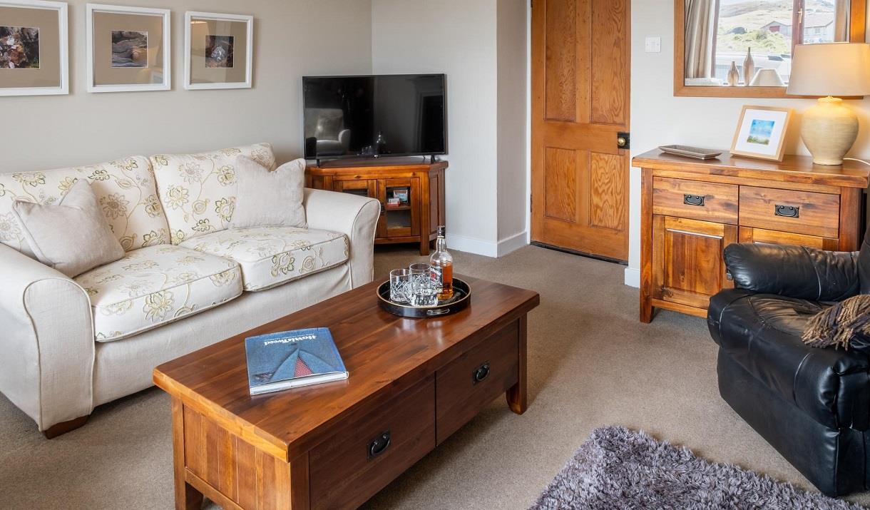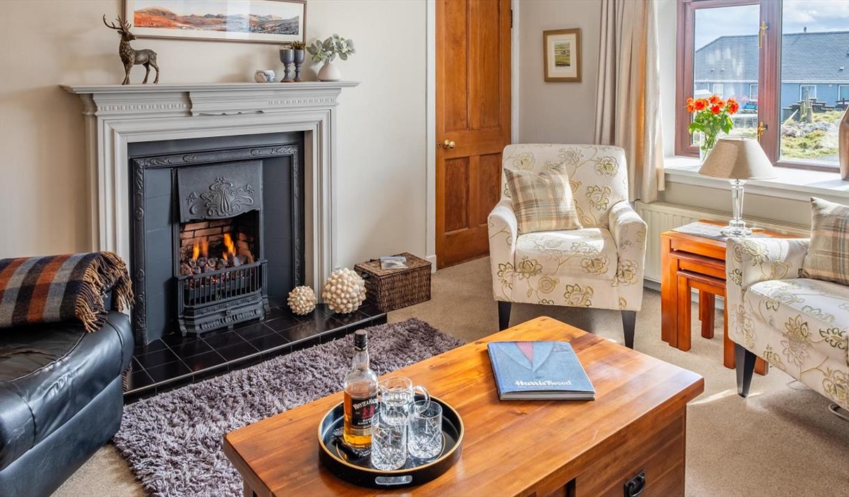 The spacious and comfortable living room is equipped with a Smart TV and gas fire.