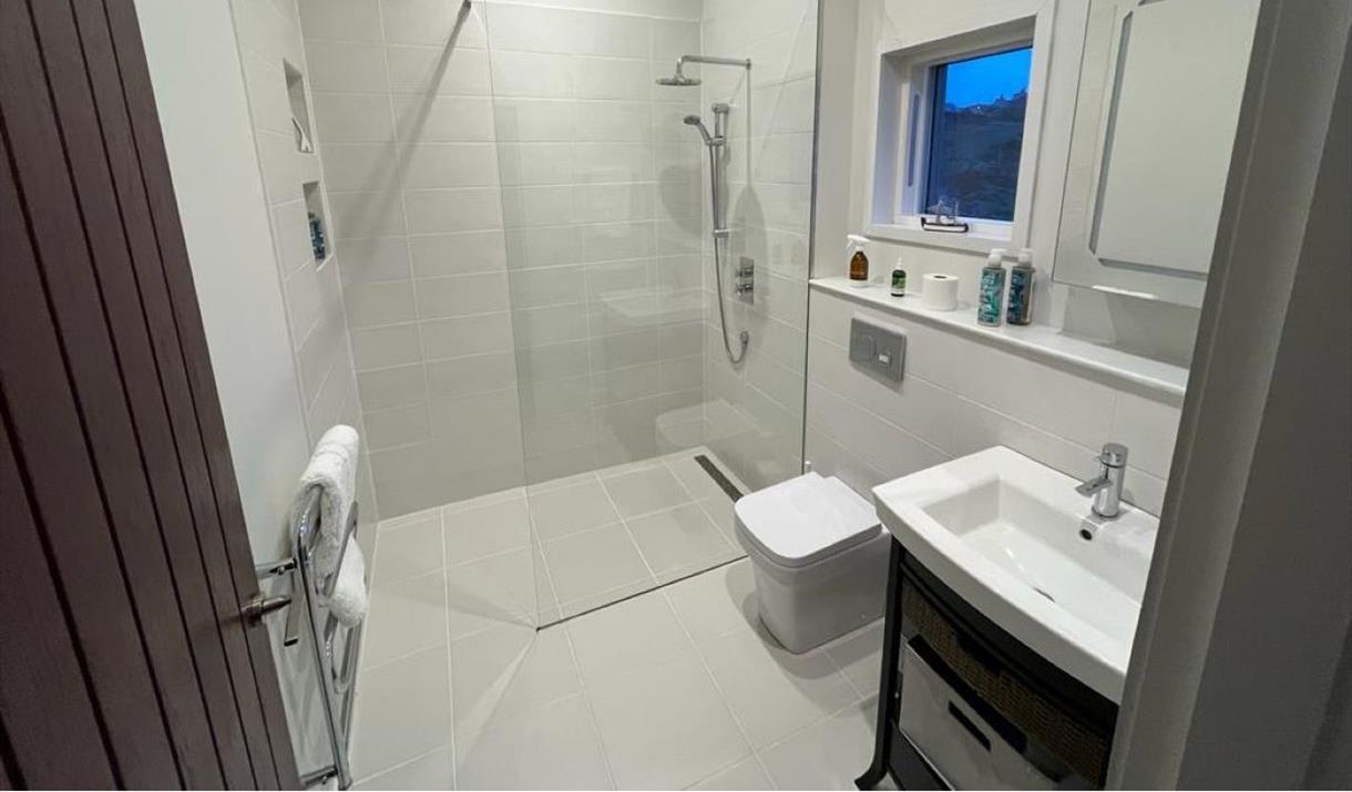 There is a king sized bed in the bedroom and built in wardrobes with ample hanging space and drawers (including a hair dryer and iron/ironing board). The Jack and Jill bathroom embodies luxury, with a large walk in shower with constant hot water and natural, ethical toiletries. Egyptian cotton towels and luxurious bedding ensure a good night’s sleep.