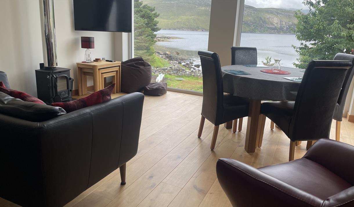 The Mission House is equipped with the following; Electric Rionte radiators throughout. Electric Hot water system. Multi fuel stove. Double aspect Bedroom with king bed, fully made with linen provided. Twin room, fully made with linen provided. Wet room with large shower, heated towel rail, heated mirror, basin, toilet. Towels provided. Utility room with coat hooks, boot tray, iron, ironing board, vacuum cleaner, clothes airer, washer dryer machine. Open plan living / dining / kitchen with vaulted ceiling, double patio doors and Loch view. Stove with a starter supply of wood / kindling, Freeview TV. The kitchen is fully equipped with electric hob, extractor, grill and oven, microwave oven, Fridge with ice box, Dishwasher ,Crockery, utensils. Please see our website for a full list of items included.