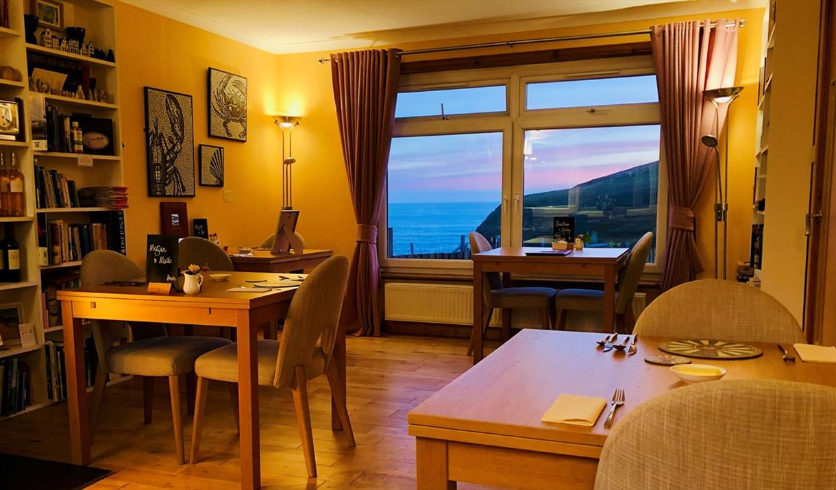 The dining room is calm and welcoming, with sea views and an atmosphere that encourages guests to settle in and enjoy a complete evening. We also serve wine, cocktails and other drinks, so there’s no need to drive anywhere afterwards.