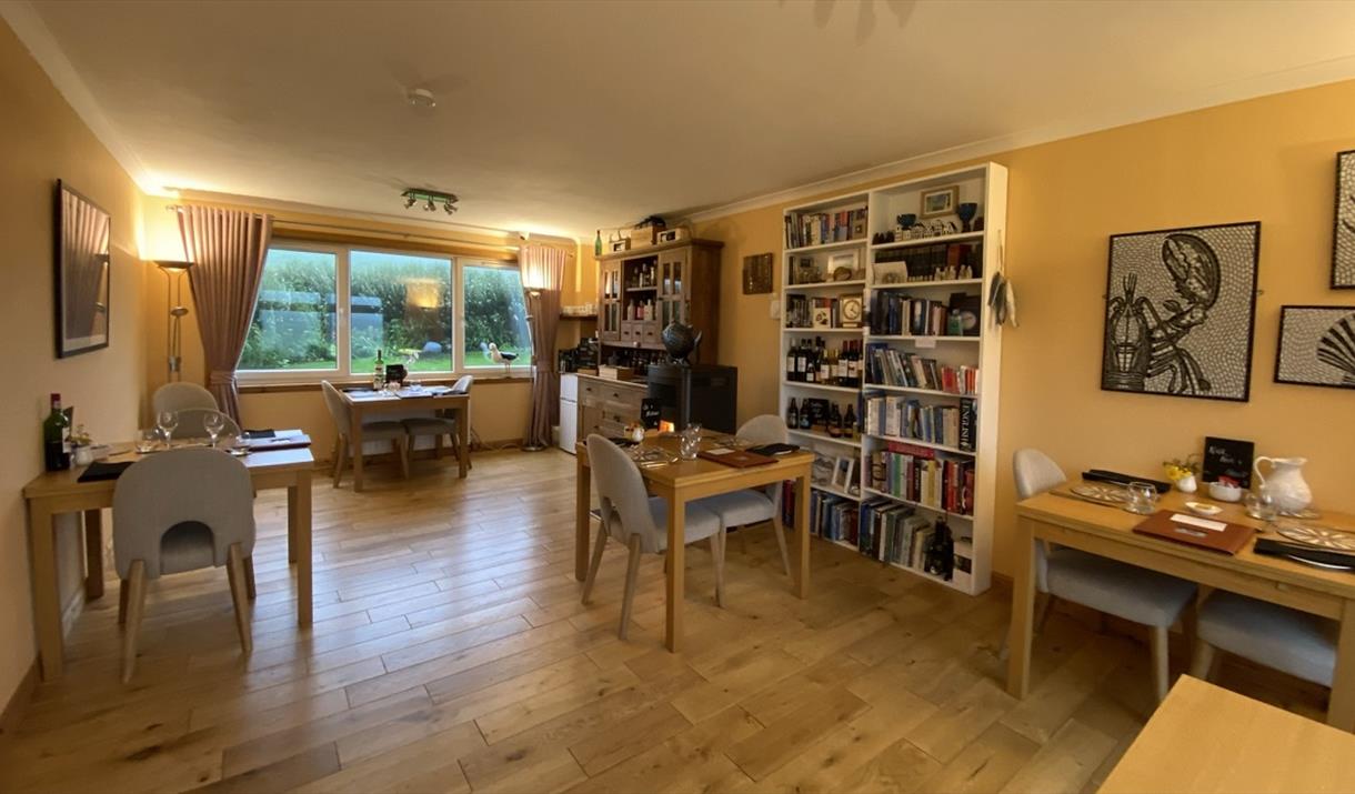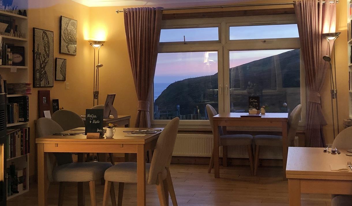 The dining room is calm and welcoming, with sea views and an atmosphere that encourages guests to settle in and enjoy a complete evening. We also serve wine, cocktails and other drinks, so there’s no need to drive anywhere afterwards.
