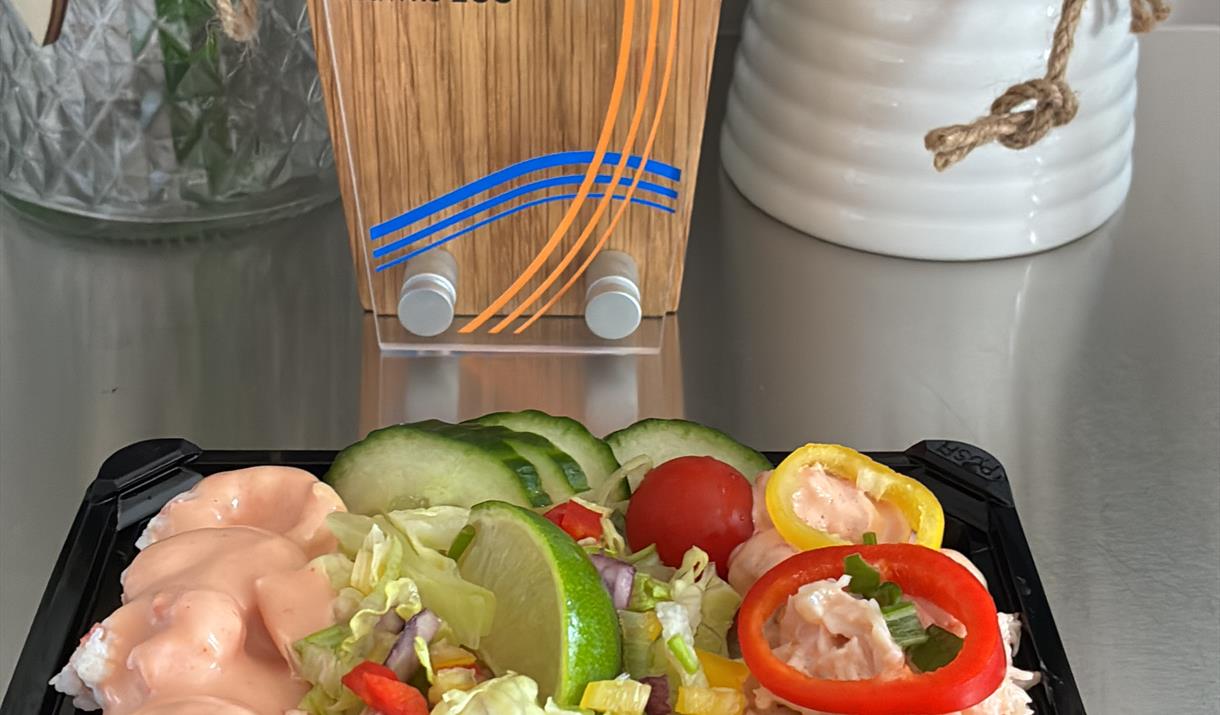 Lochmaddy Bay Prawns 2GO serve exclusively sustainable creel caught Scottish Langoustine/Prawns in a variety of creative dishes all homemade/prepared using ONLY the Seafood caught from their own fishing boat and locally sourced salad.