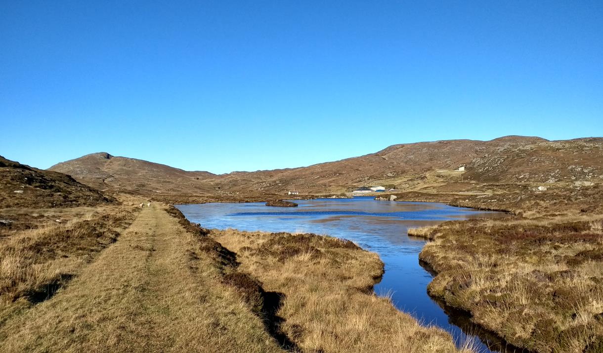- Turn left along a grassy track that takes you along the shores of the beautiful Loch an Dùin.