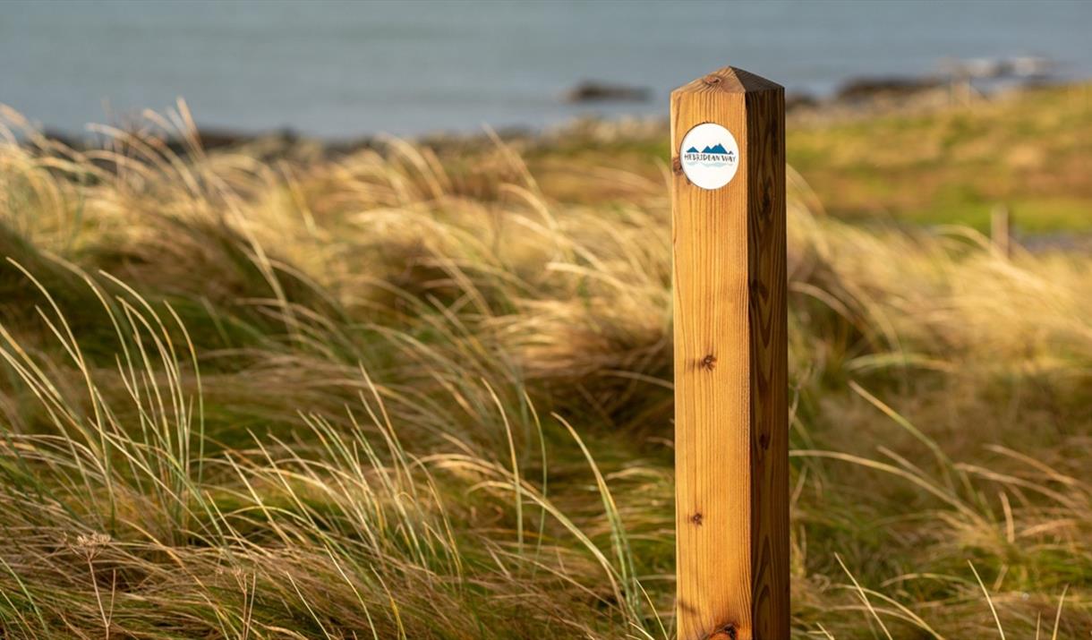 - A prominent finger sign indicates the start of a beautiful stretch of walking along the west coast of South Uist. Turn right onto the path.10. Keep close to the beach until you join a small tarmac road. Continue to the end of this then carry on along a rough track and through a gate to pick up another fine path next to the shore.
