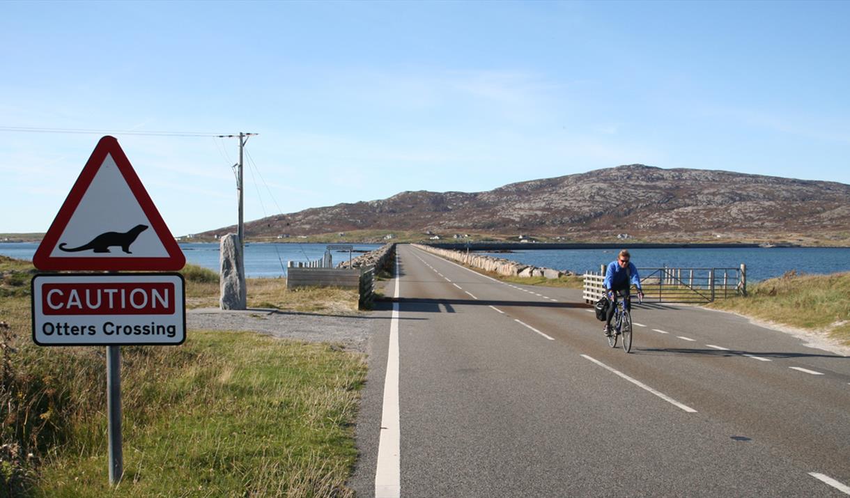 The start of the Hebridean Cycling Way is at the monolith in the village of Vatersay. The route follows the main road over the causeway to Barra and round the scenic west coast of Barra to the Ardmhor ferry terminal. Here is where you get the ferry to Eriskay and the ferry journey is 40 minutes. From the ferry terminal the route passes through the picturesque island of Eriskay over the causeway to South Uist. Here the route mostly follows the main road, but at South Boisdale (Leth Meadhanach) the route goes west towards the machair and goes through the villages of North Boisdale, Kilpheder and then rejoins the main road at Daliburgh.