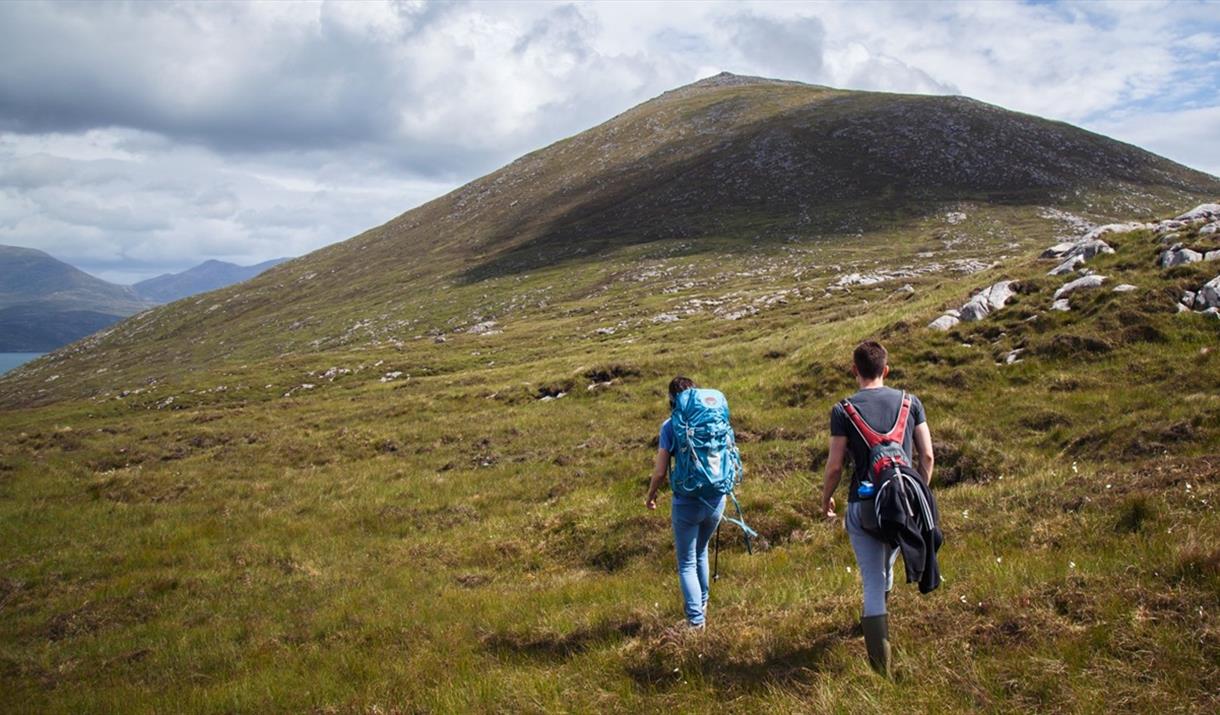 The section finishes with a tough little climb up a steep, rocky hill. It’s a tiring ascent but the views of Luskentyre beach and the saltmarsh at Seilebost make an unforgettable end to the day.