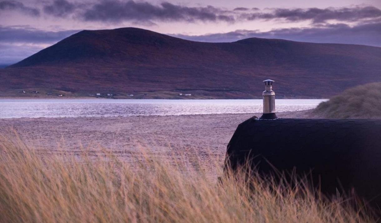 Immerse yourself in the ultimate hot and cold therapy experience beside the stunning coastlines of the Outer Hebrides with our new Saltbox Sauna, a mobile wood-burning barrel sauna that frames the best ocean views with it’s panoramic half-moon window facing the ocean. Seating 4-6 people the sauna can be booked privately by the hour or single seats can be purchased in mixed public sessions. The combination of hot and cold therapy creates a relaxing rejuvenation for the mind, body and soul and much more. Cool off in the sea or use our supply of freshwater. The choice is yours.