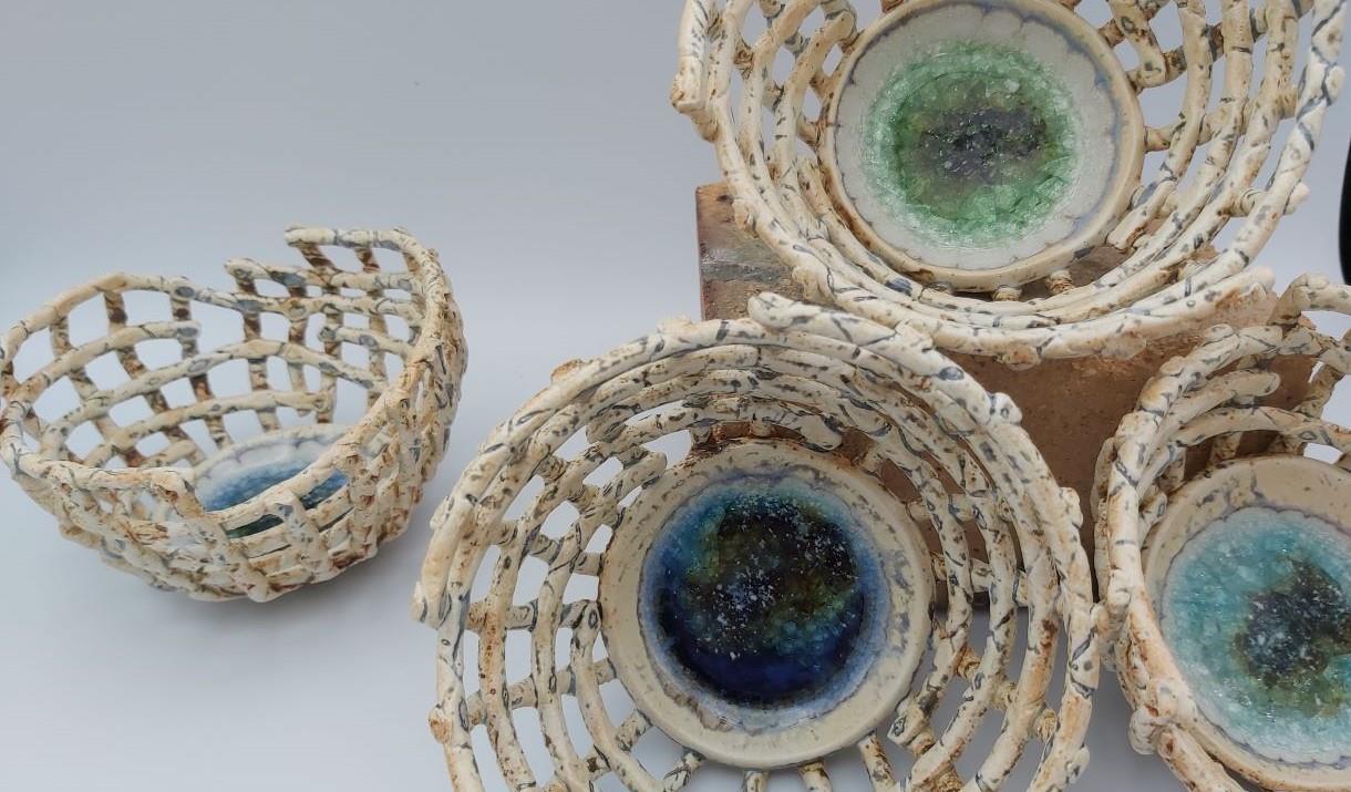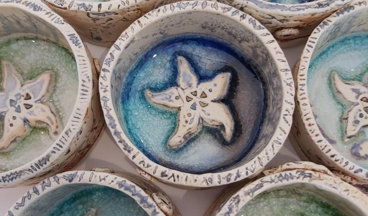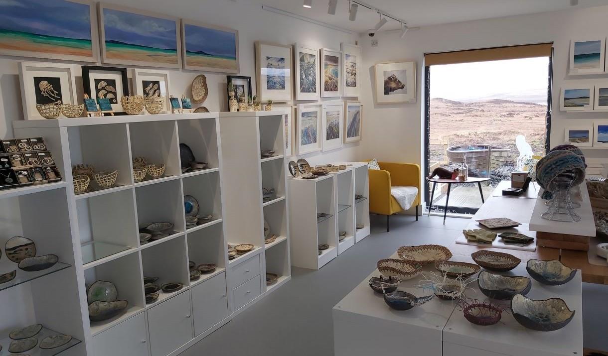 The ceramic work within the gallery is designed and made by artist /owner Louise Cook, to reflect the colour, pattern and textures of her Hebridean island home. Natural beach-weathered sea fragments, abandoned at the hightide line, provide some of the delicate textures captured on the surface of the clay. All other works within the gallery are made by local artists and makers, including original works in watercolour, acrylic & oils, prints & photocards.